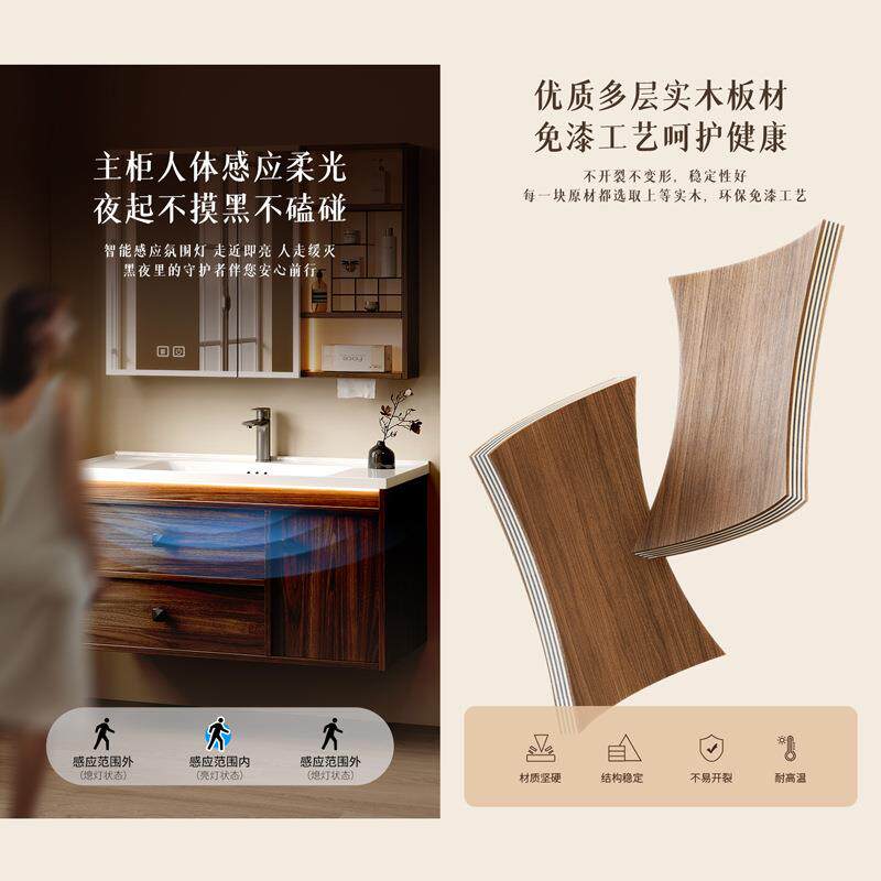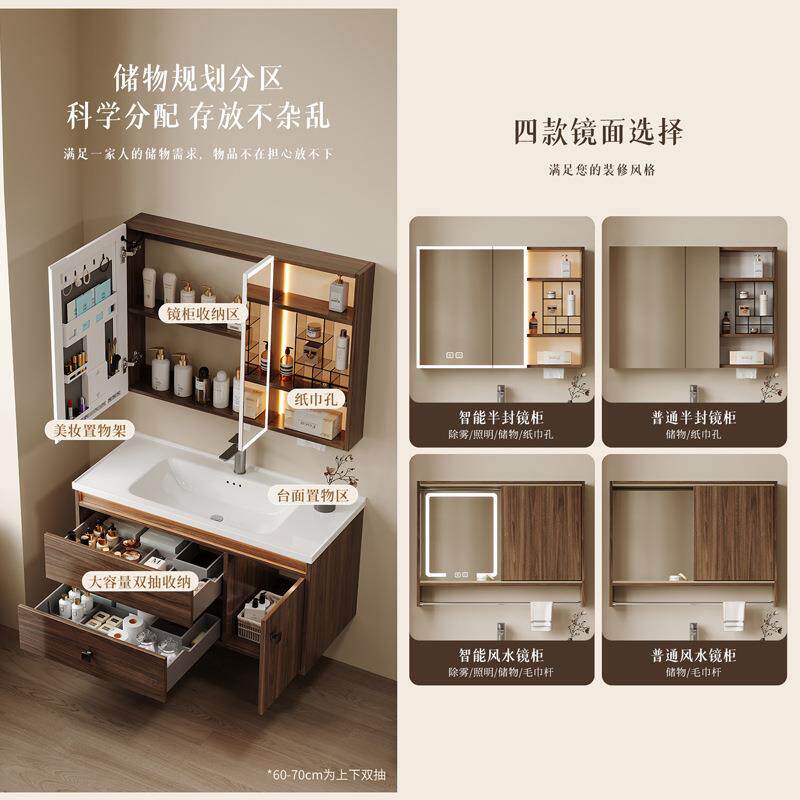 为您提供商品中古风胡桃木纹实木浴室柜组合风水镜智能镜柜感应灯主柜JMT051的详细介绍,