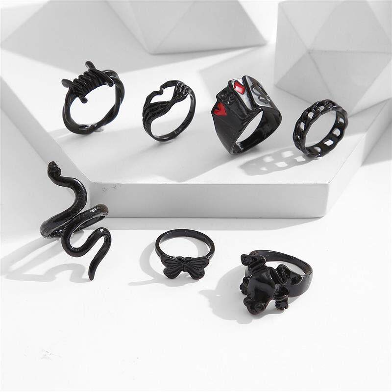ring 戒指女设计感小众 punk joint rings female black rock set由