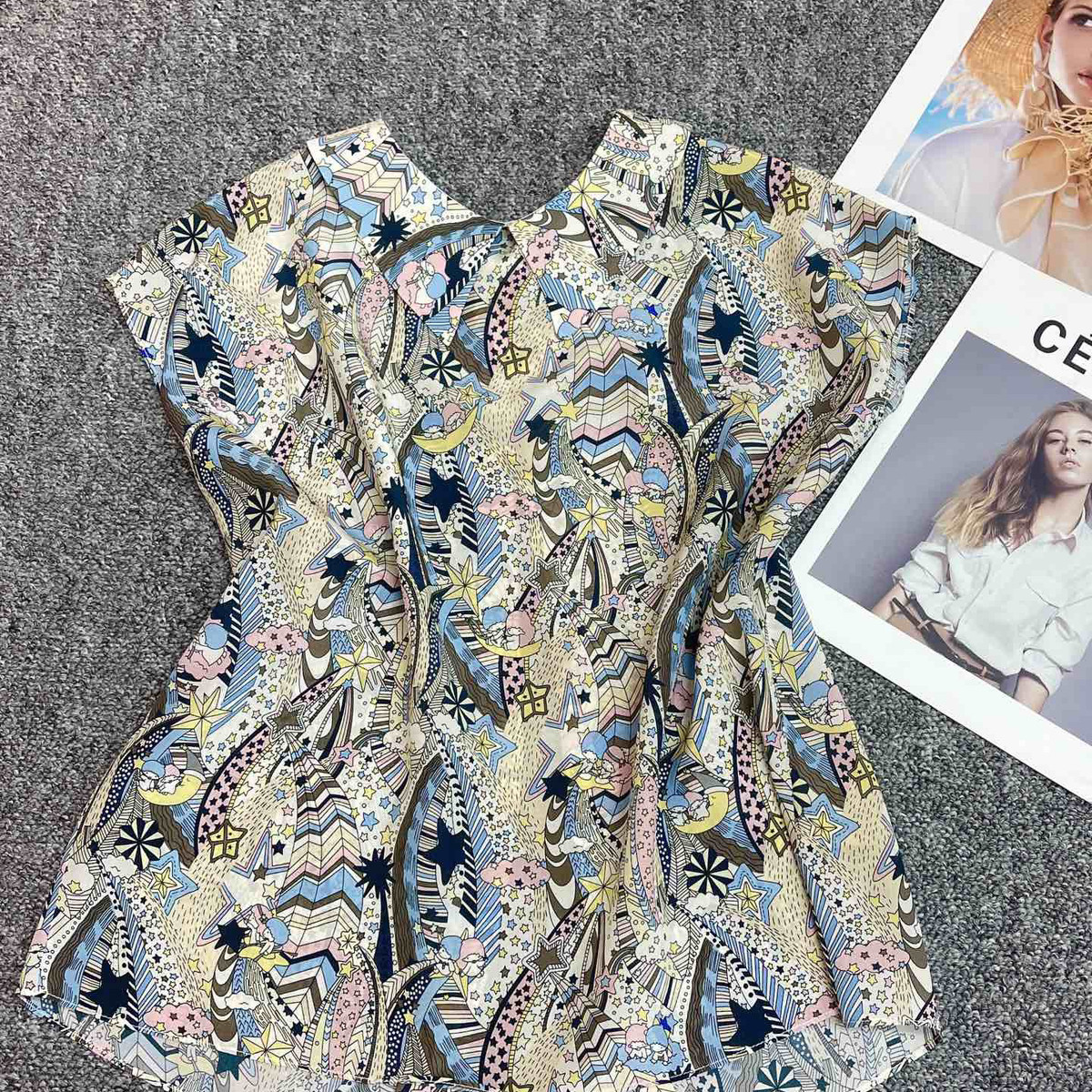 瑞瑞斯利印花真丝真丝上衣休闲春夏新款 74286 WU敌气质和好看小衫