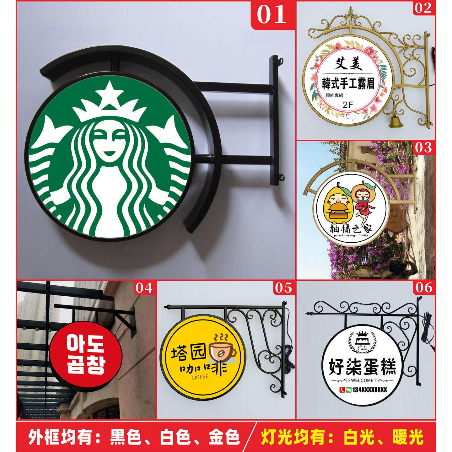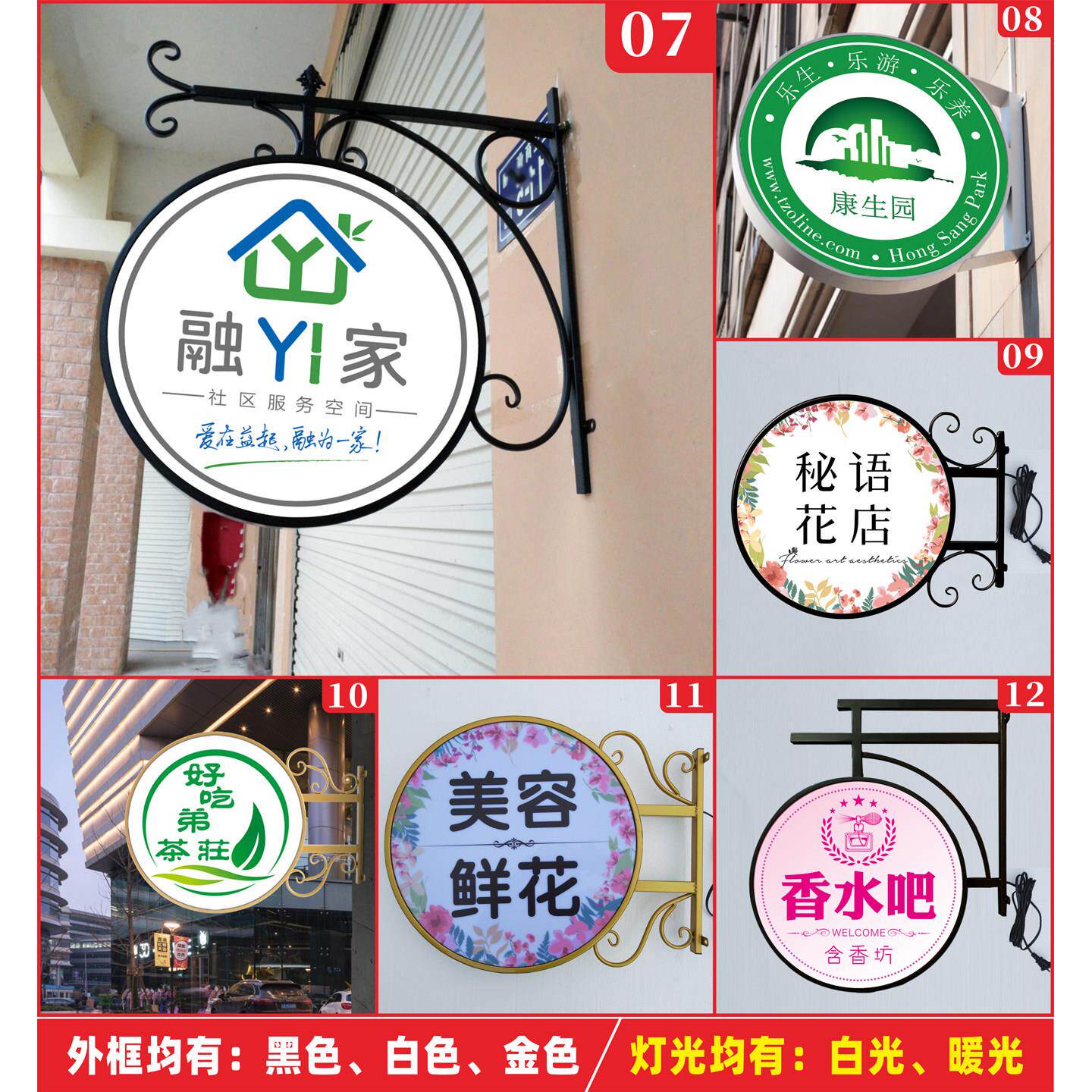 为您提供商品铁艺圆形双面灯箱LED发光户外广告牌商业街店铺侧挂展示招牌定制的详细介绍,