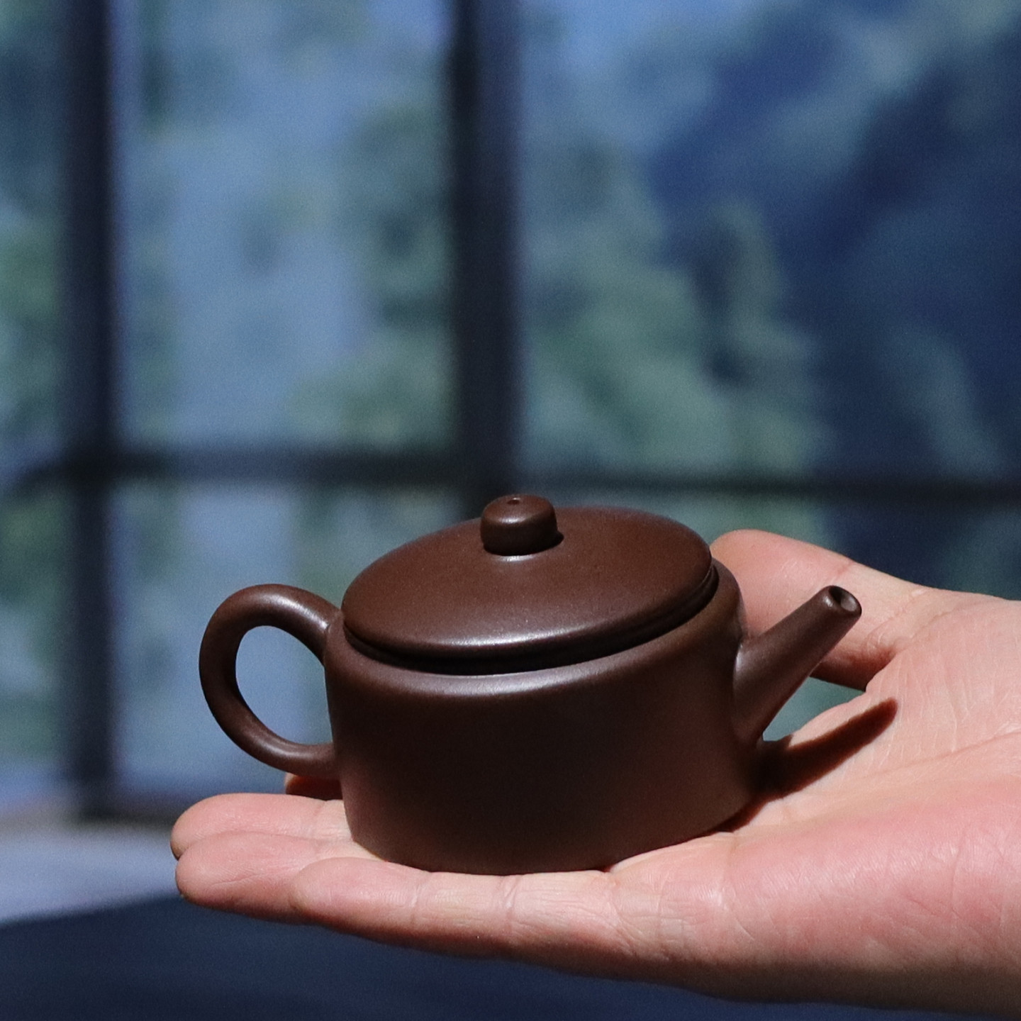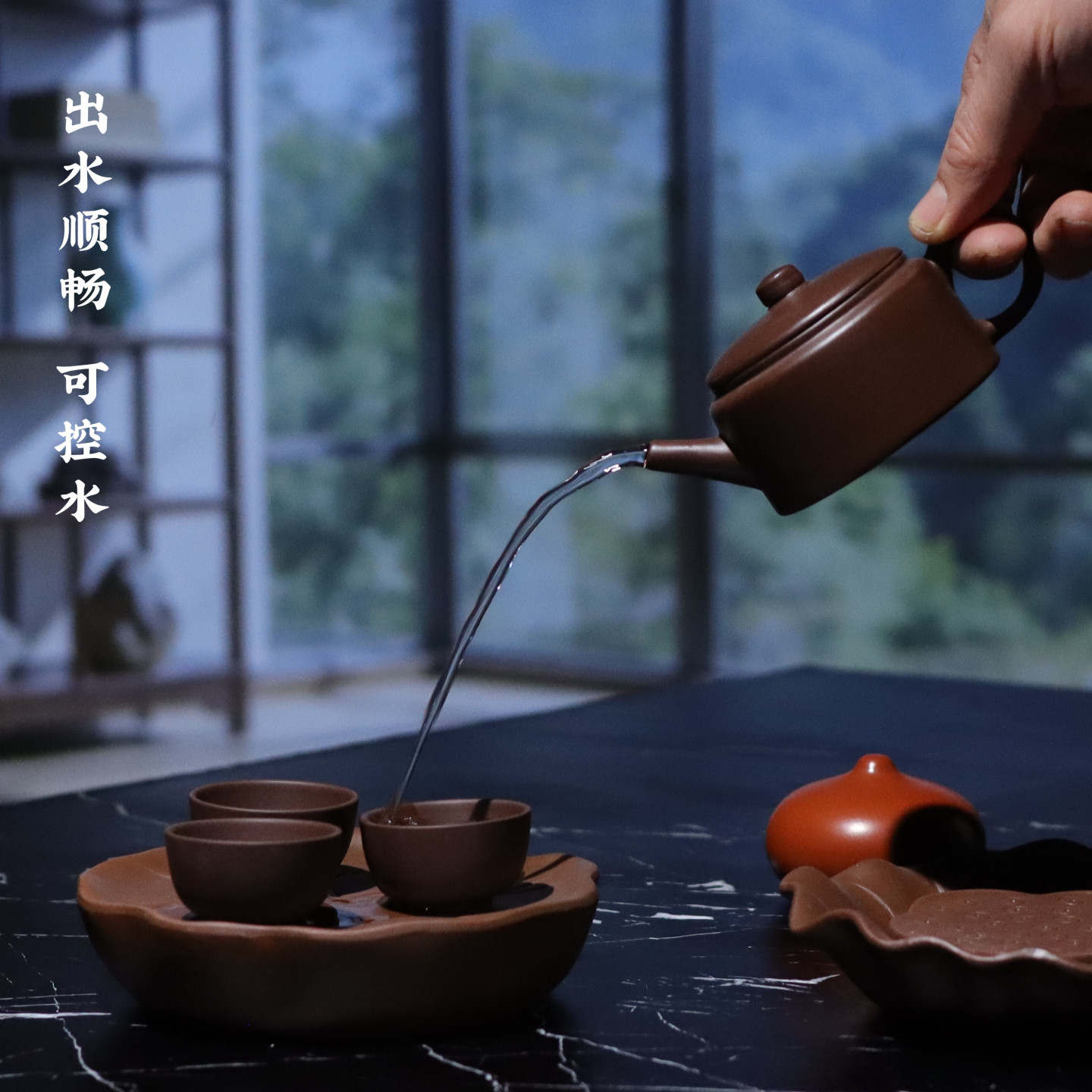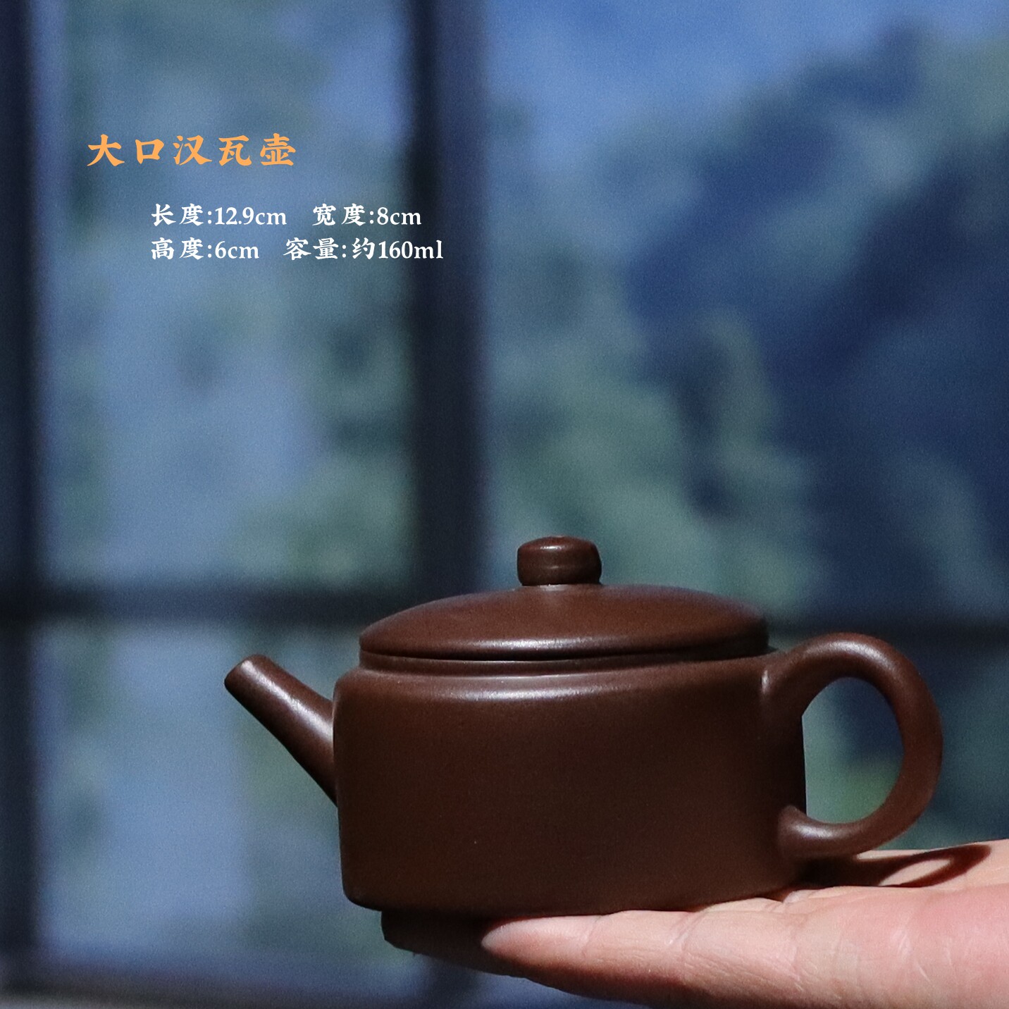 潮州紫泥汉瓦壶大口径工夫茶壶小容量密封可断水半手工家用泡茶器