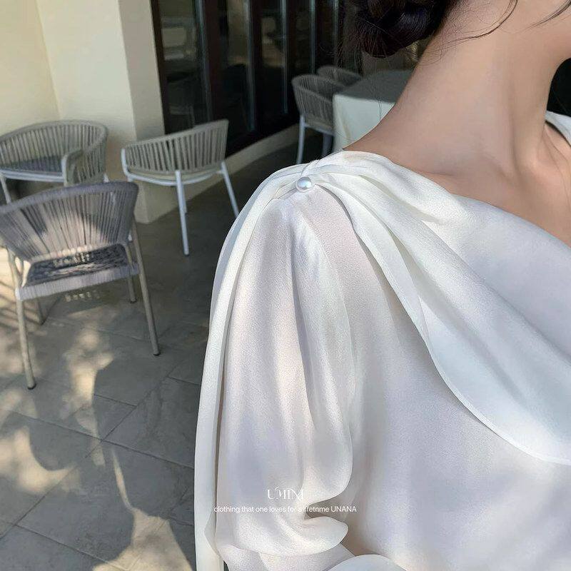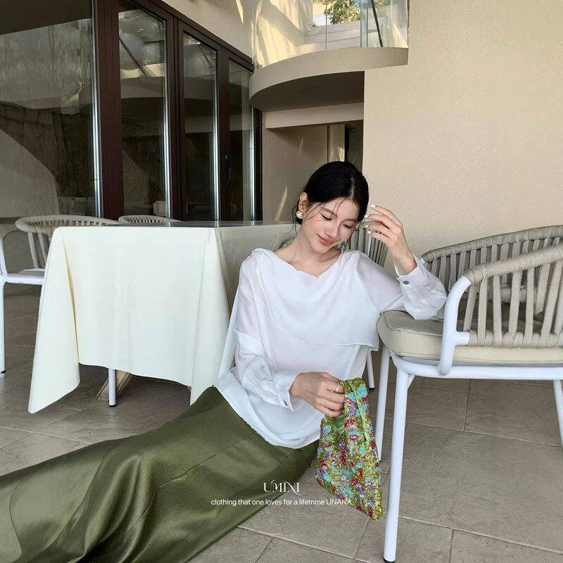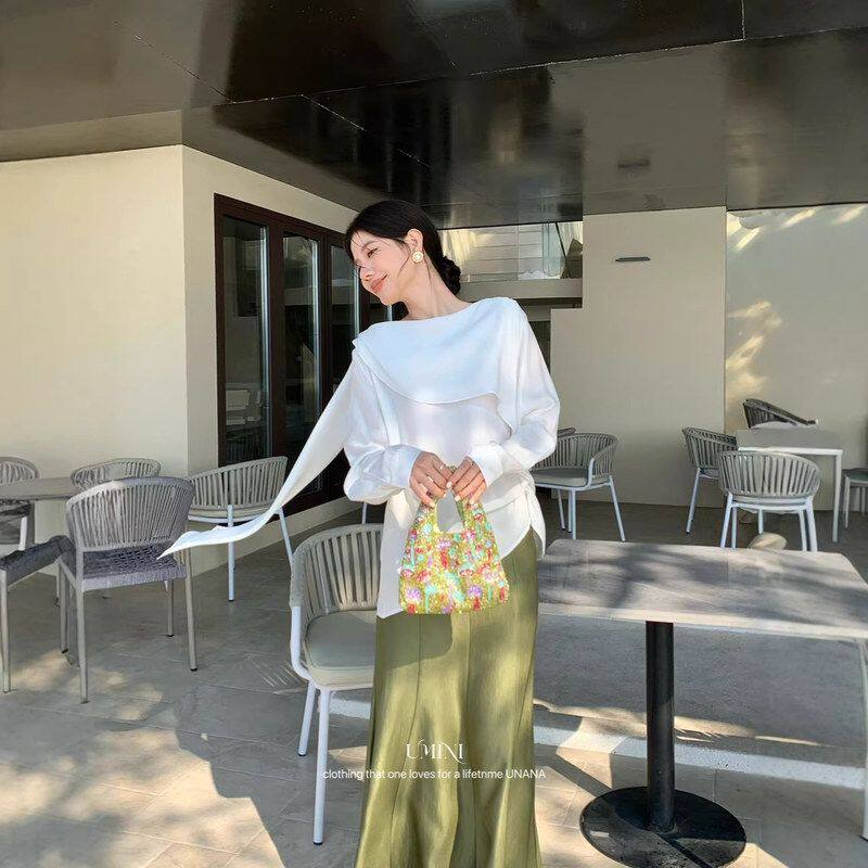 F6550气质小女人简约氛围披肩飘逸显瘦衬衫 MINI十三行UNANA新品