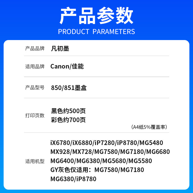 为您提供商品适用佳能IX6780墨盒850 IP7200 MX928 MG7580喷墨机墨盒 ix6700 IX6880 IP8780 IP7280 851墨盒IP8780 IX6780的详细介绍,