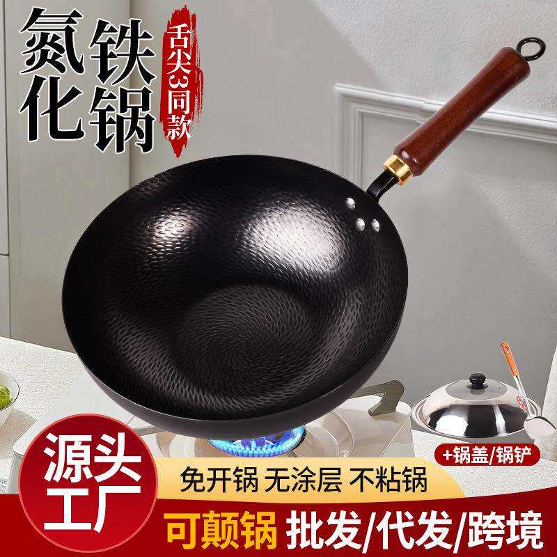 氮化锅平底鱼鳞锅家用炒菜锅锤纹锅鱼纹铁锅精铁锅不粘锅龙鳞炒锅