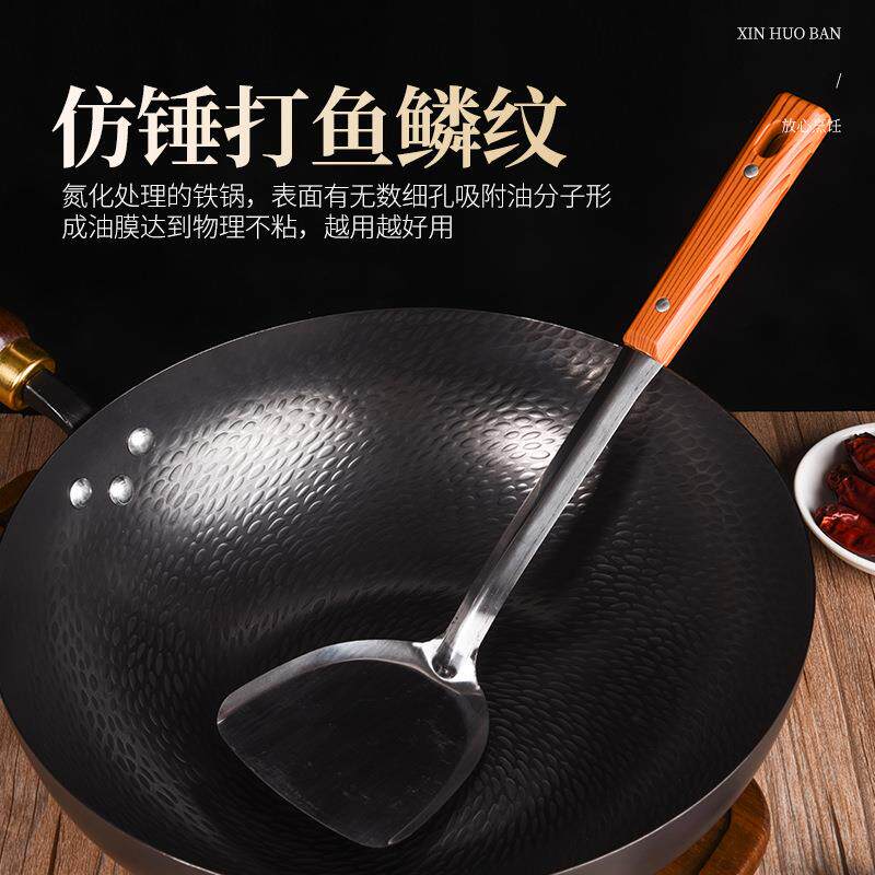 为您提供商品氮化锅平底鱼鳞锅家用炒菜锅锤纹锅鱼纹铁锅精铁锅不粘锅龙鳞炒锅的详细介绍,