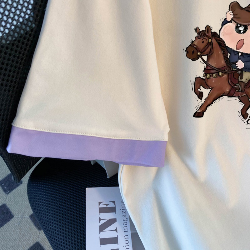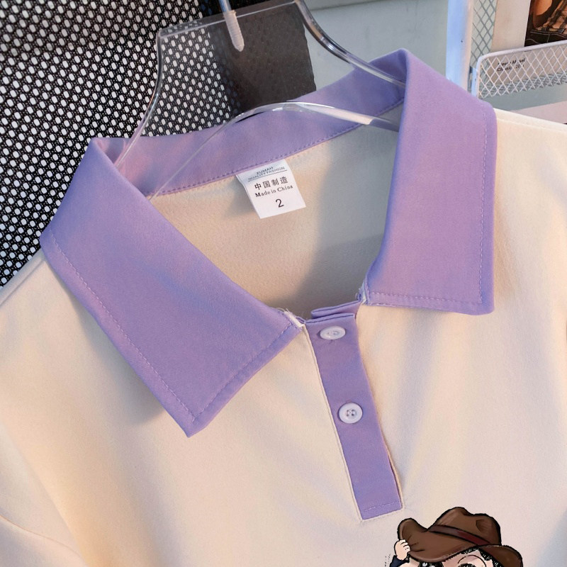 夏季 慵懒风卡通polo衫 撞色翻领短袖 T恤男女款 上衣潮 宽松插肩半袖