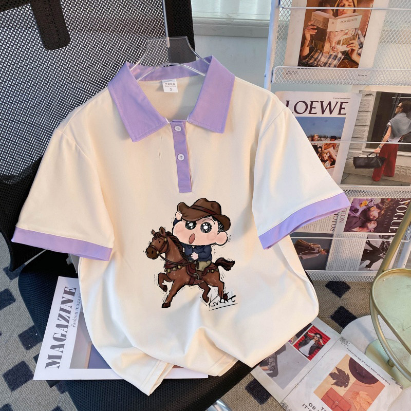 为您提供商品夏季 慵懒风卡通polo衫 撞色翻领短袖 T恤男女款 上衣潮 宽松插肩半袖的详细介绍,