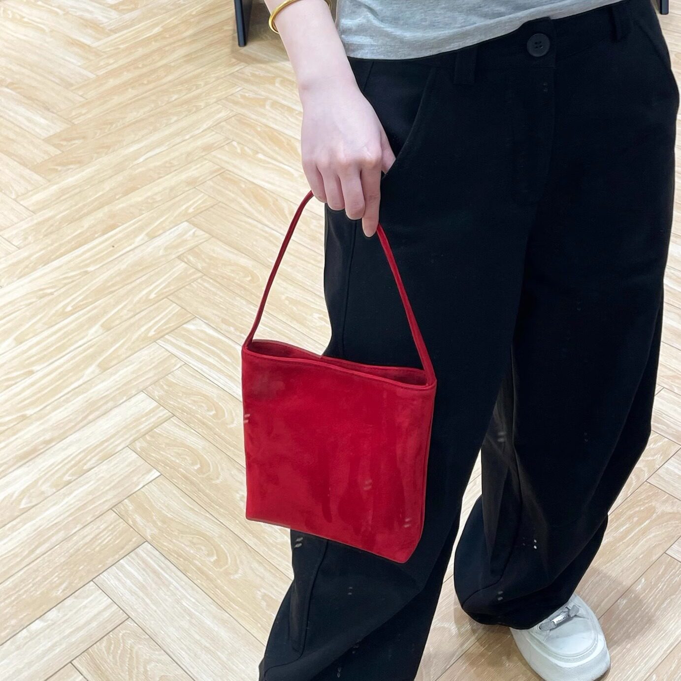 红色磨砂羊皮小托特包女vintage中古腋下包百搭精致小拎包斜挎包由