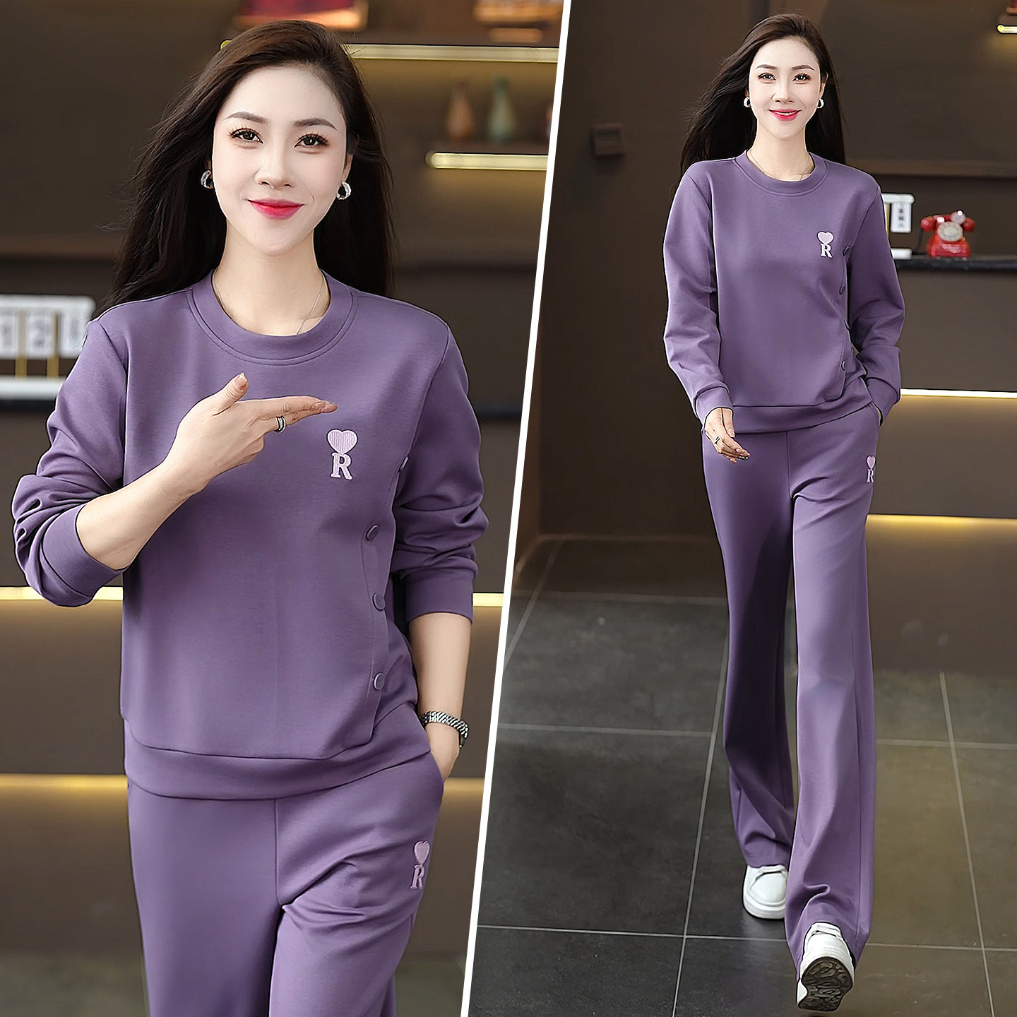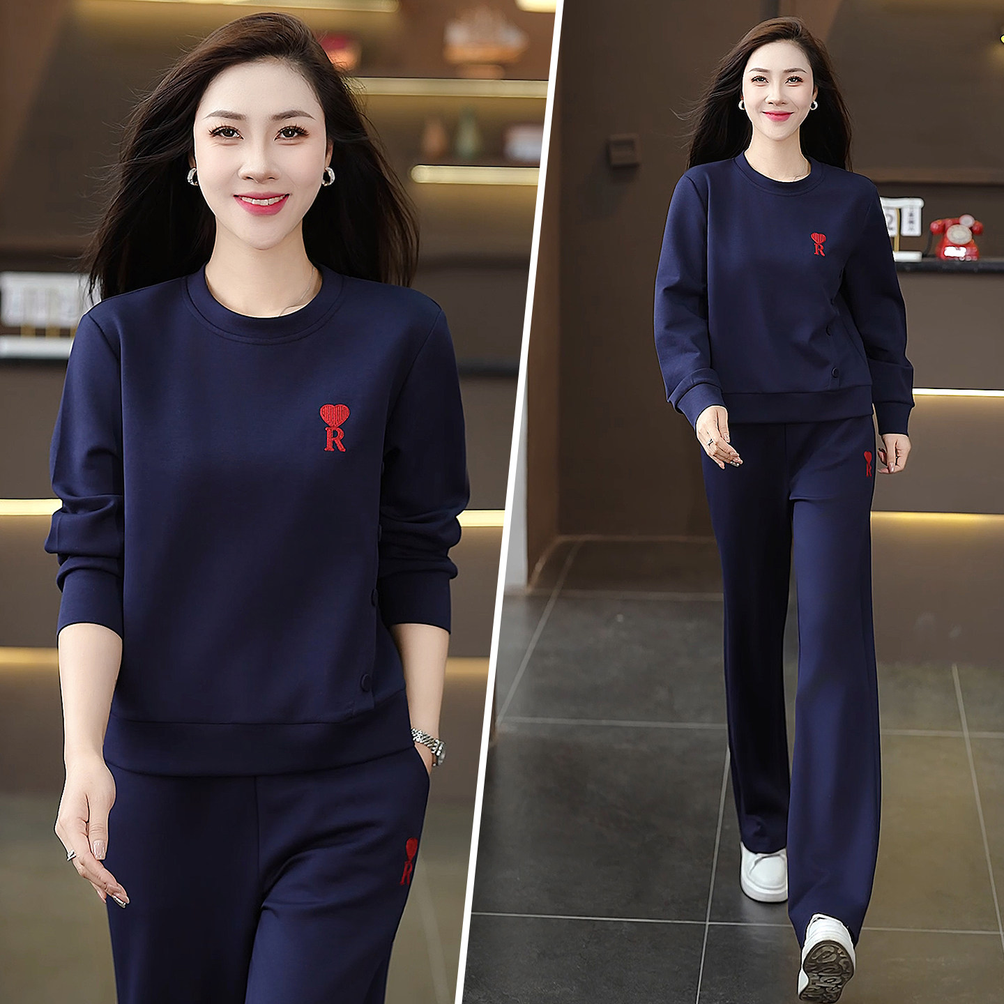 女运动休闲通勤慵懒时尚 2026春款 套装 两件套长袖 百搭阔腿裤