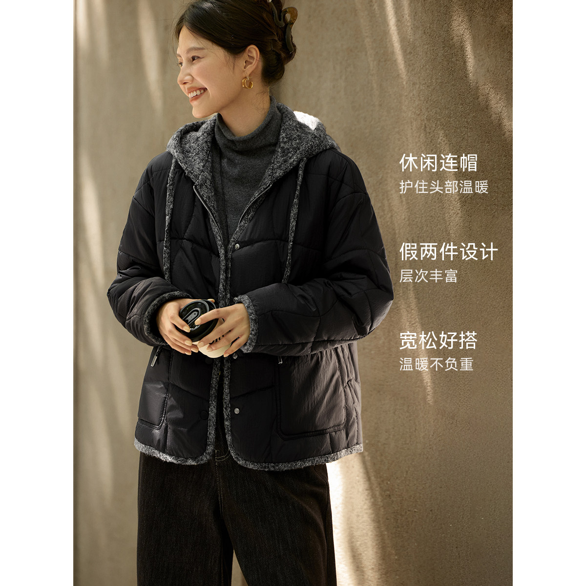 为您提供商品加厚保暖显瘦不臃肿棉服 XWI欣未轻休闲拼接假两件夹棉外套女冬季的详细介绍,
