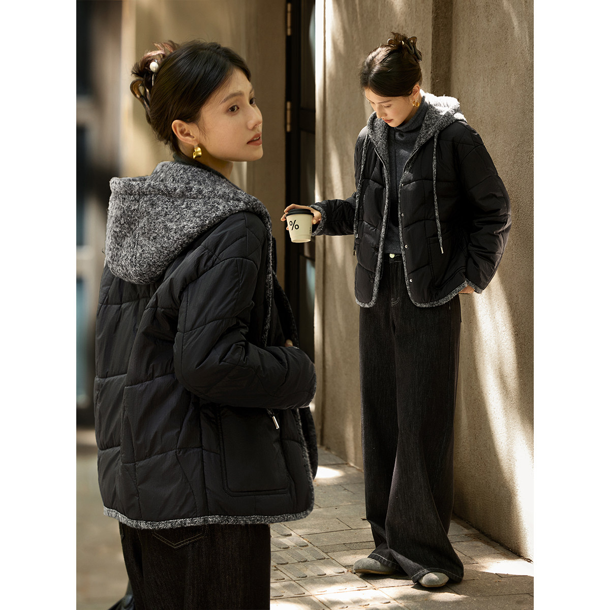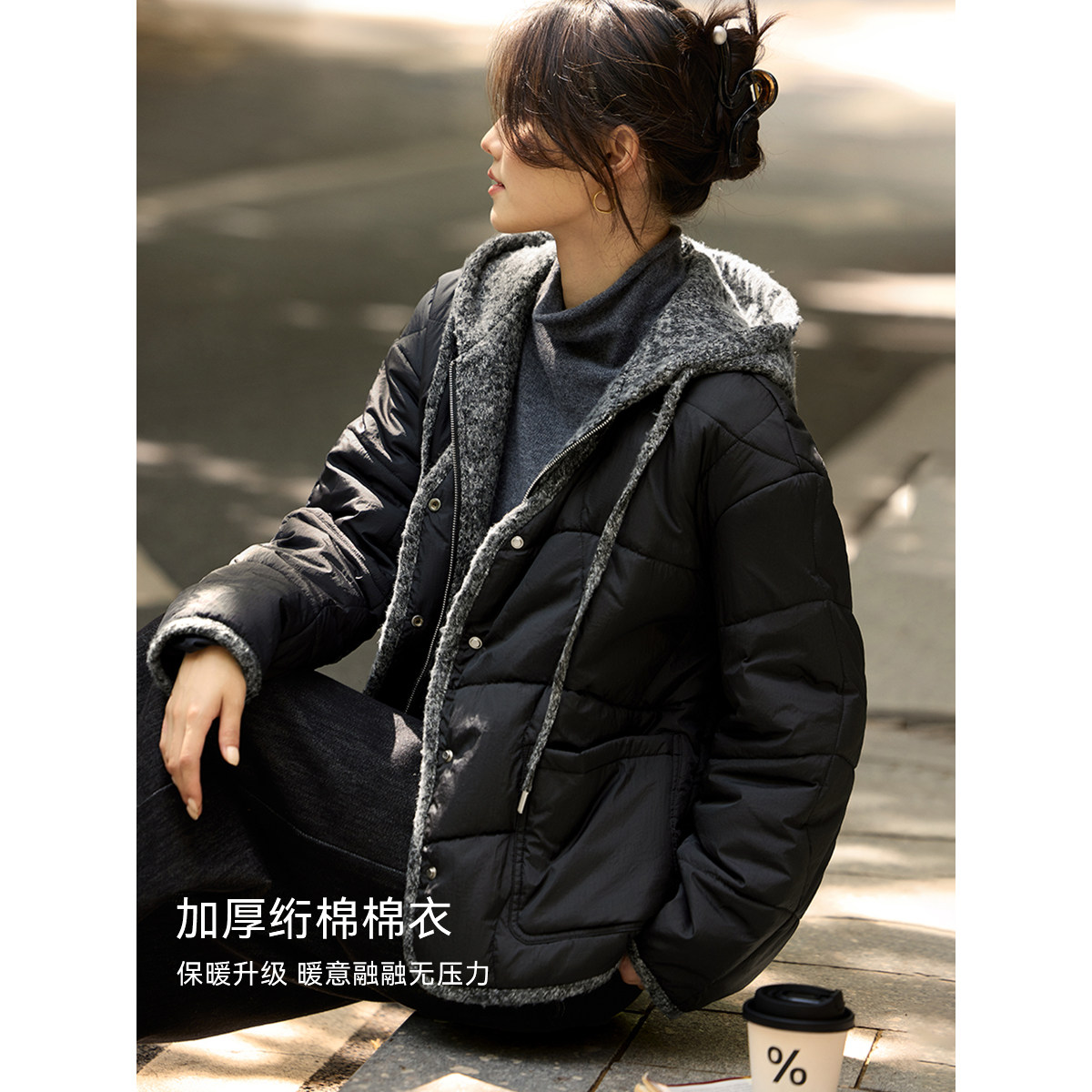 加厚保暖显瘦不臃肿棉服 XWI欣未轻休闲拼接假两件夹棉外套女冬季