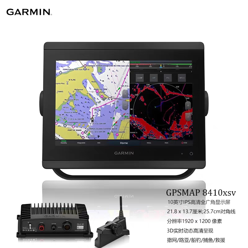 佳明探鱼器8410XSV实时3d动态触控屏超高清声呐探头 美国Garmin由