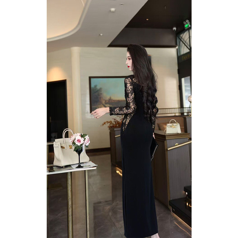 原创设计轻奢高定修身 气质醋酸拼接蕾丝连衣裙 如黛 尤克菲儿由