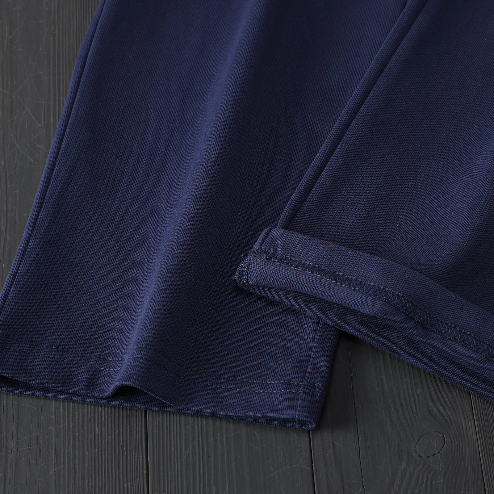 保暖亲肤松紧腰男女藏蓝色卫裤 紧密双纱精梳全棉直筒长裤 秋冬厚款