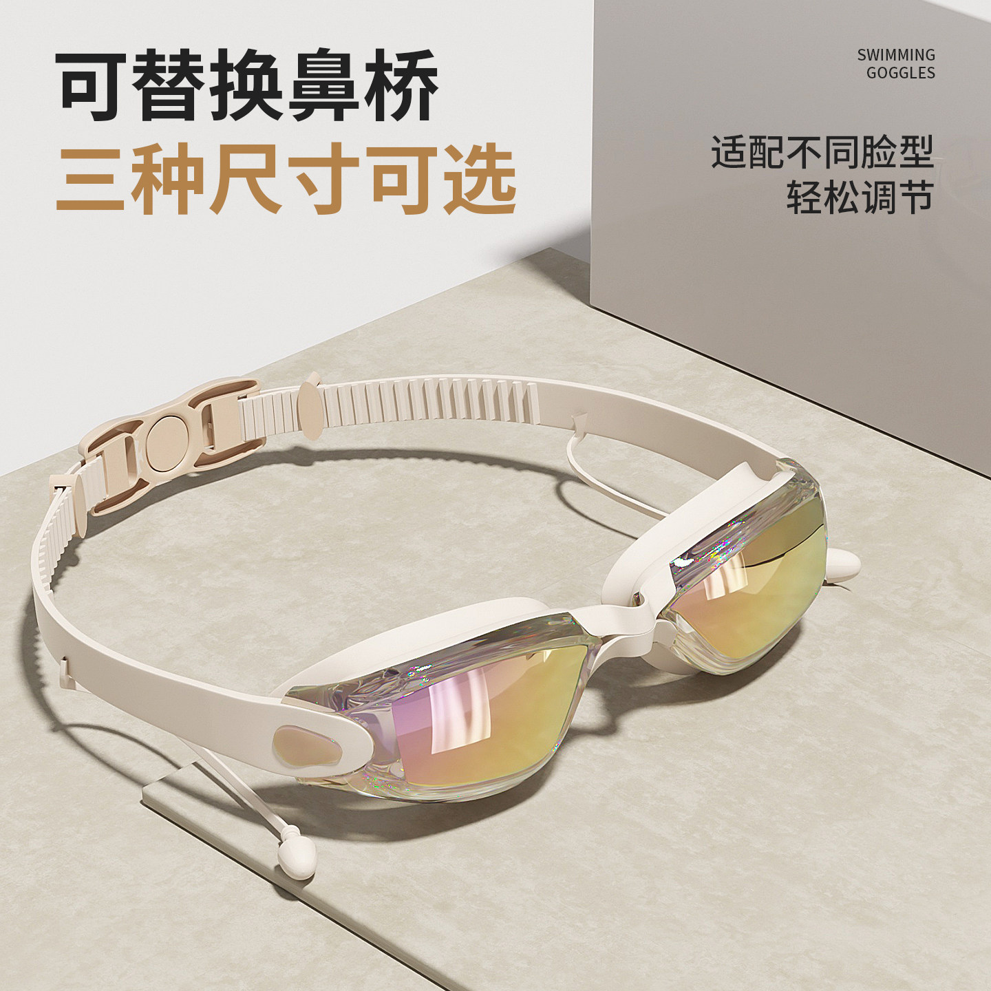 大框游泳眼镜潜水装 备 防水防雾高清专业近视男士 回力泳帽泳镜女款