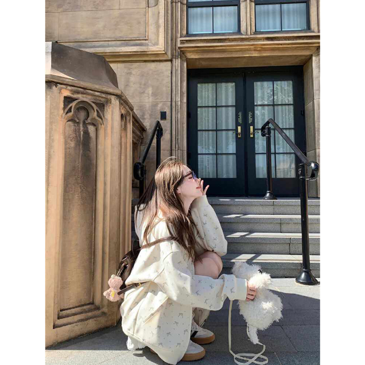 针织开衫 pusumede 慵懒漫步 圆领长袖 上衣 女设计感外套收腰短款