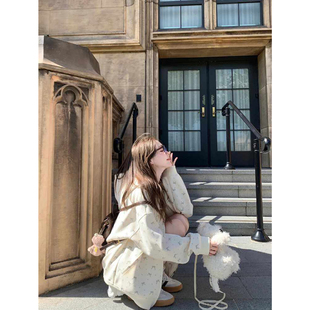 奶fufu学生连帽碎花卫衣女春秋季 薄外套大童初中高中学生 拉链开衫由