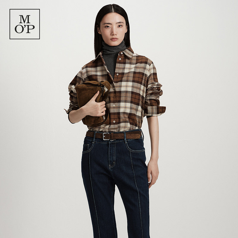 新款 女上衣 Marc Polo冬季 纹纯棉长袖 衬衫 质感巴恩风格 好看经典