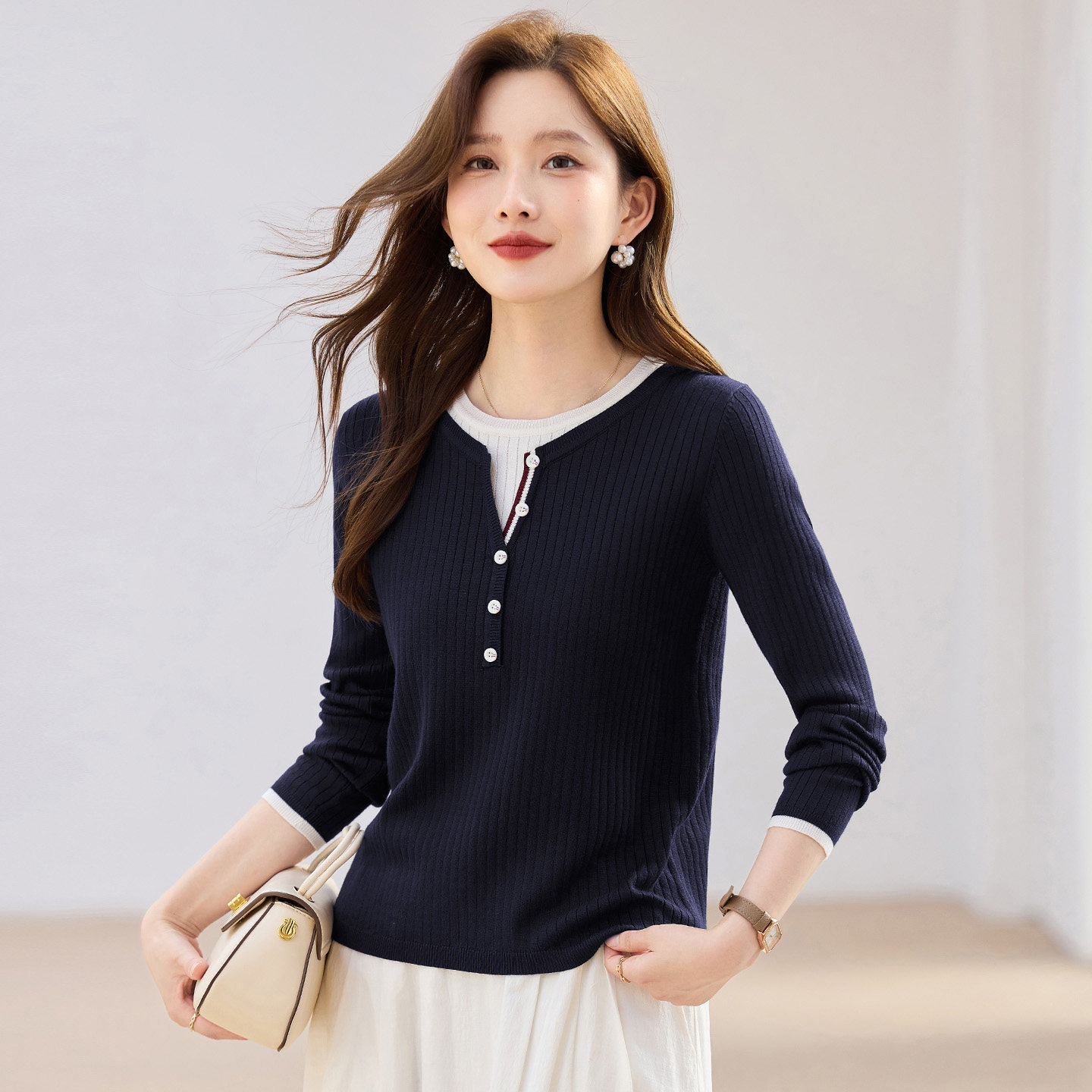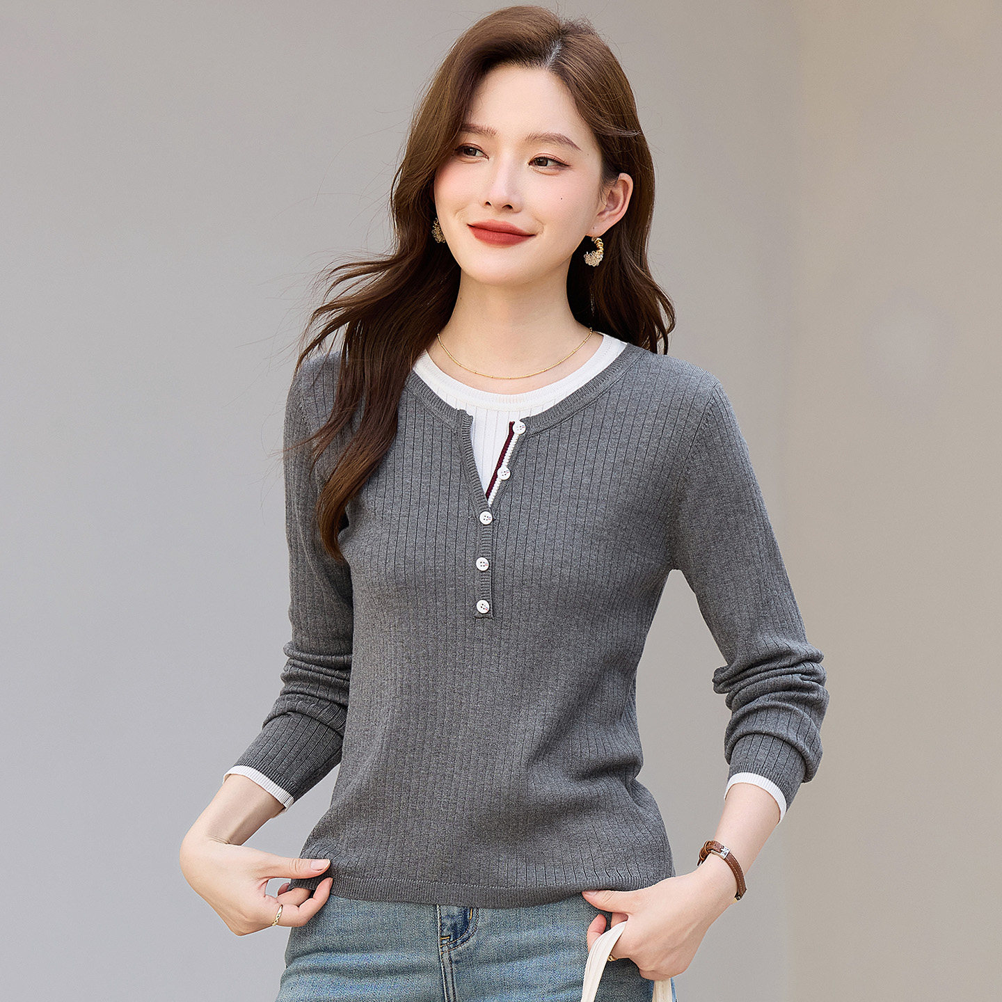 女v领百搭打底衫 外搭毛衣外套柔软 针织衫 早春新款