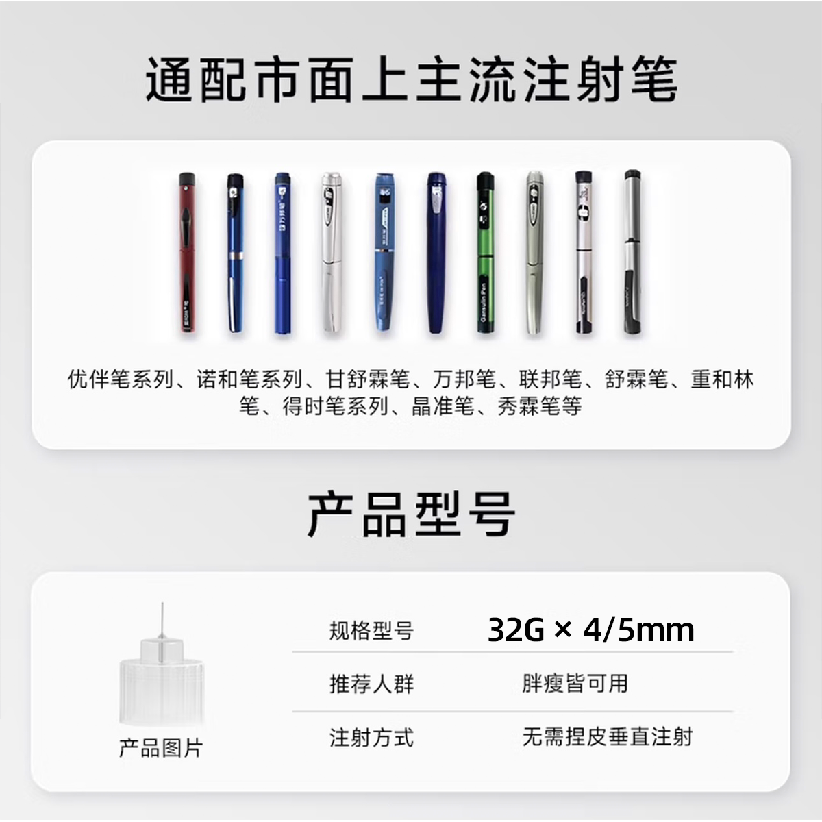 为您提供商品蓝星人32G4mm医用大平头低痛胰岛素笔针头适配诺和司美通用型针头的详细介绍,