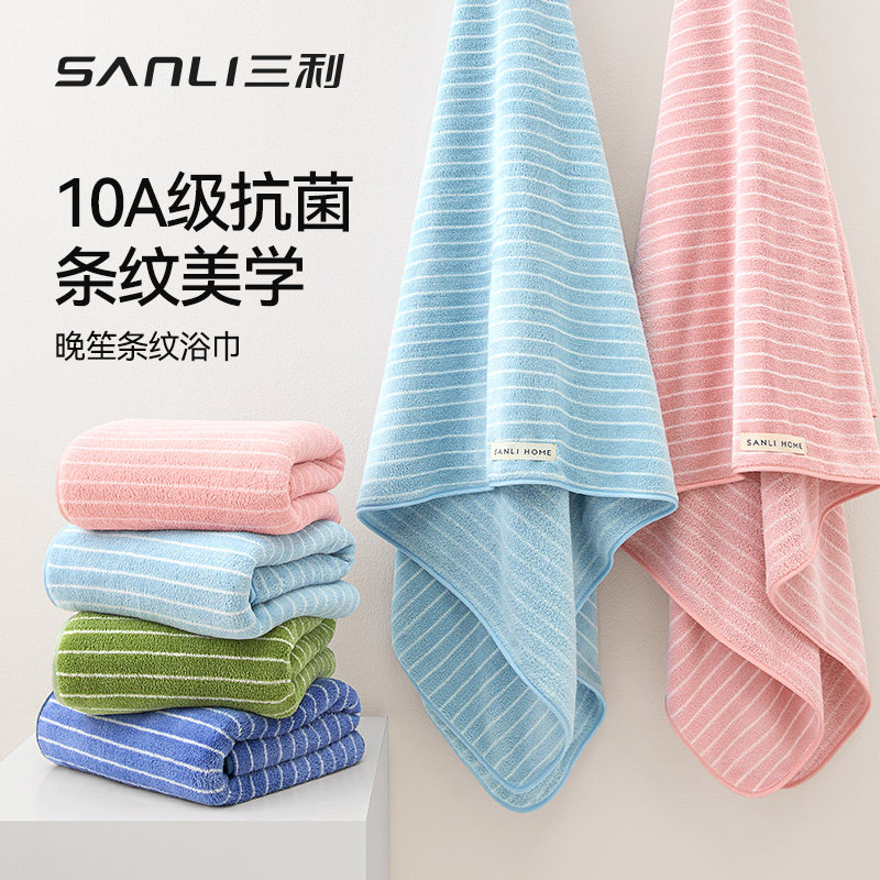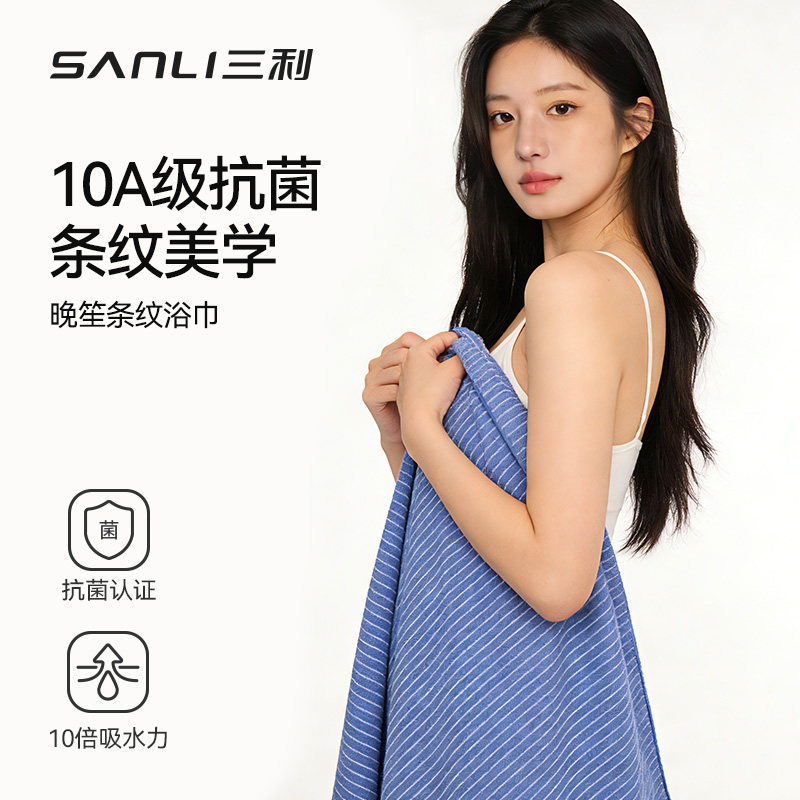 三利10A抗菌浴巾成人家用不易掉毛大人男比纯棉吸水速干大毛巾女由