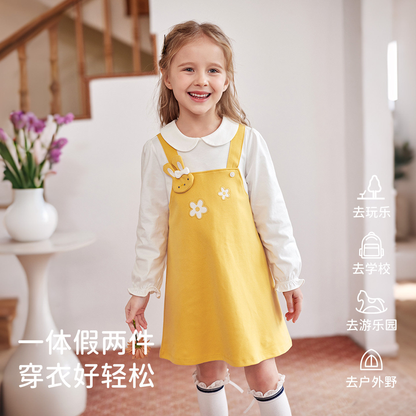 戴维贝拉女童连衣裙儿童春季 学院风假背带裙女宝宝周岁公主裙童装
