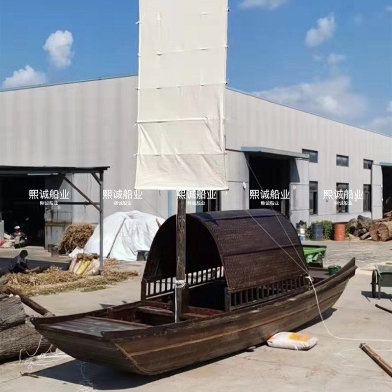 饰船景观船摄影道具船 复古乌蓬船木船渔船装