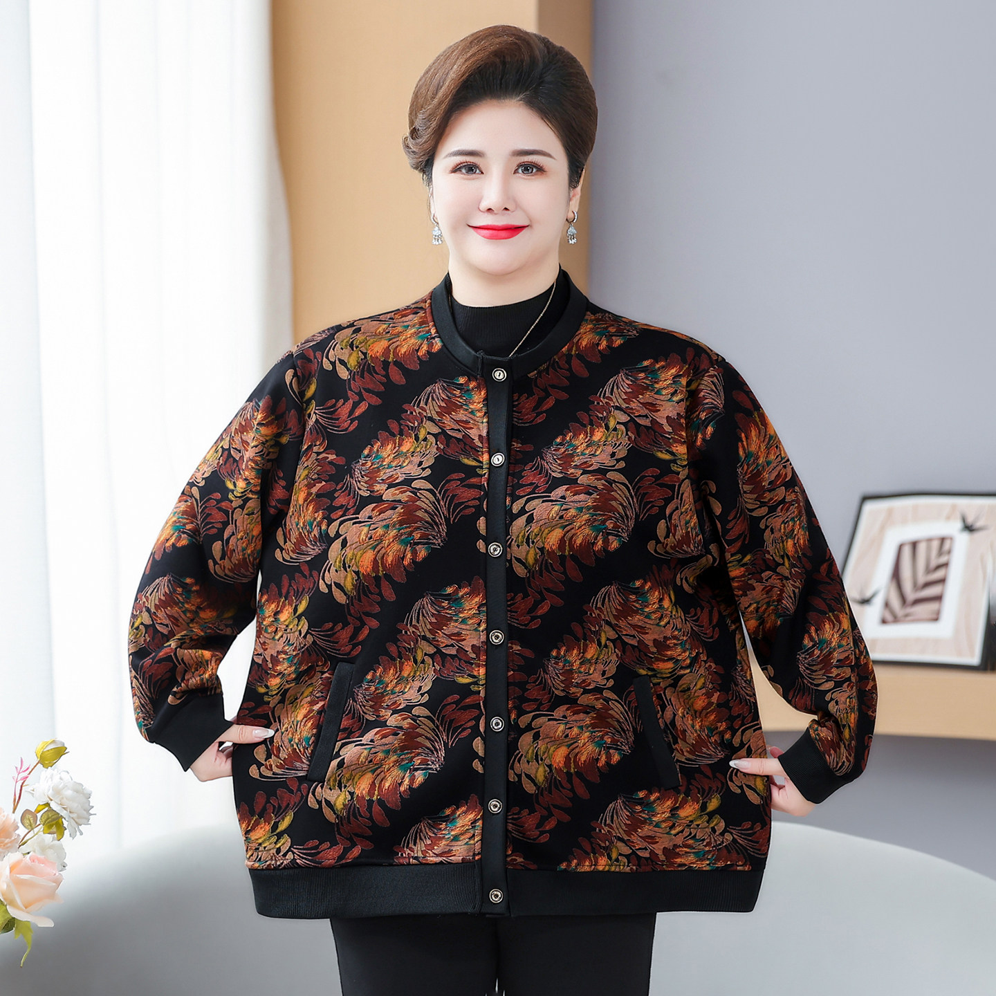 妈妈秋装 老太太衣服60岁70奶奶春秋休闲上衣 翻领外套中老年人女装
