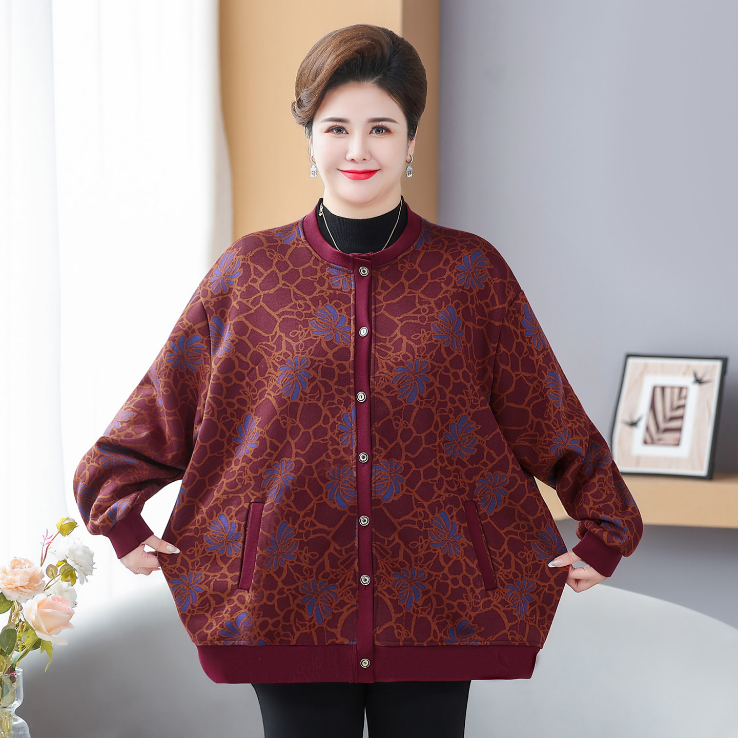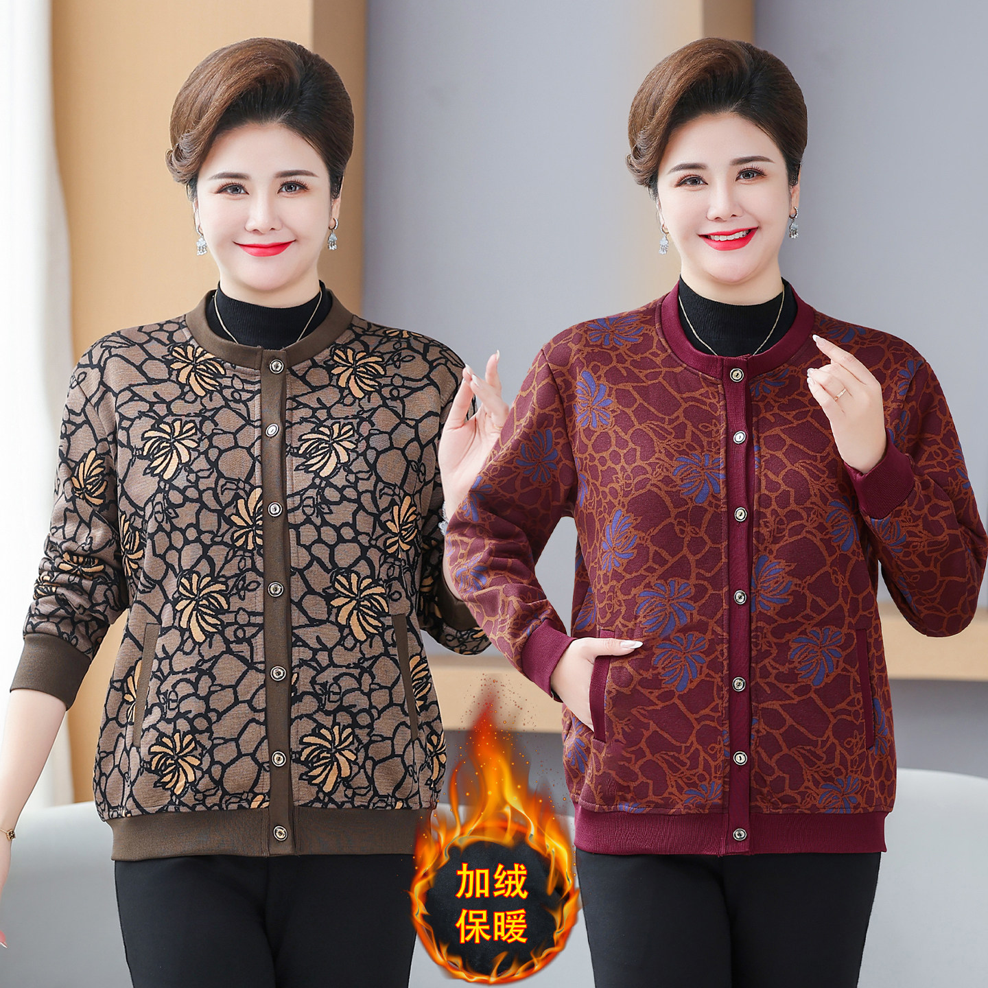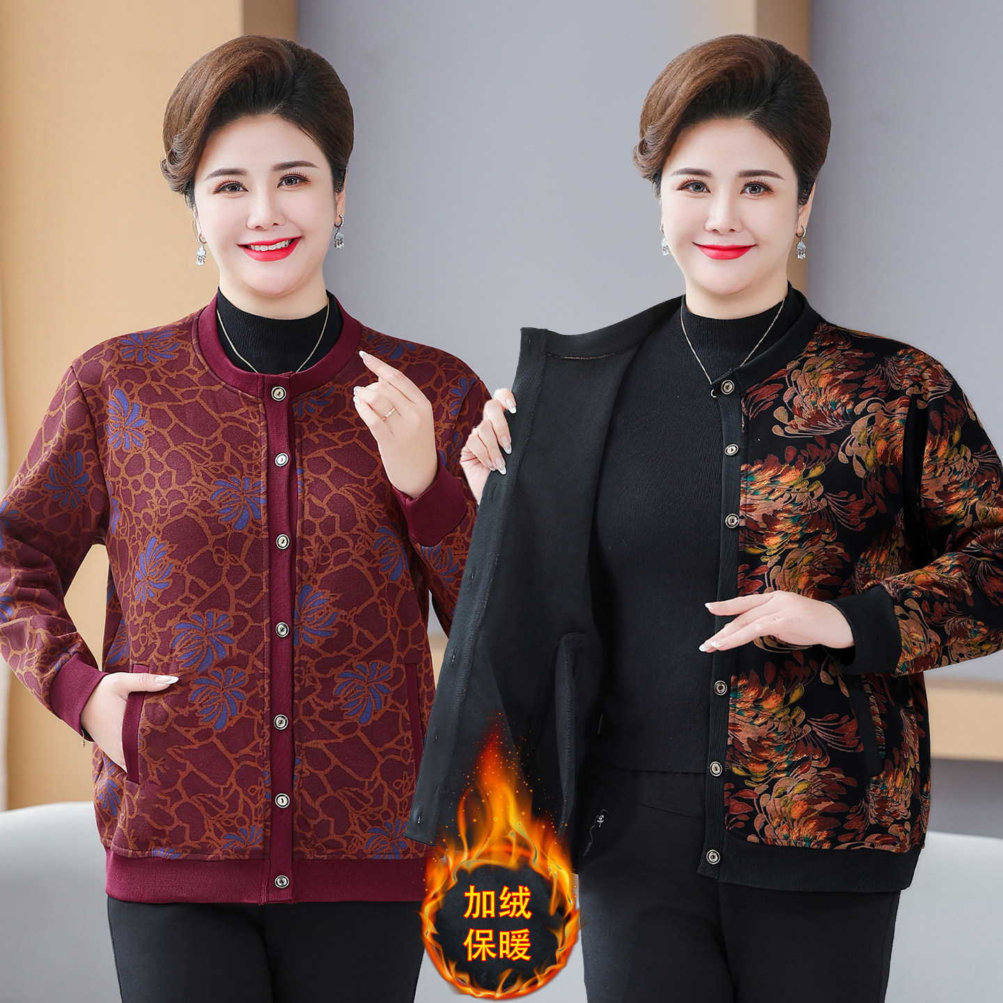 奶奶秋冬装 保暖衣老人衣服 加绒外套中老年人女妈妈毛衣老太太开衫