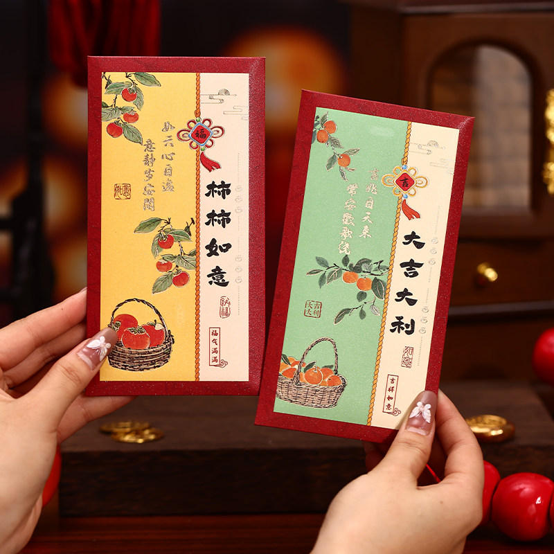 纸新年利是封传统祝福语利是封红包 2026春节红包袋福字烫金铜版