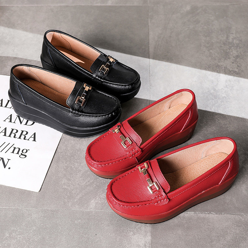厚底休闲真皮厚底摇摇鞋 红色结婚单鞋 舒适防滑女鞋 女软底妈妈鞋