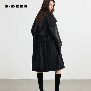 sdeer圣迪奥女装 时尚 翻领收腰做旧牛仔长款 风衣S253Z1801 春秋装由