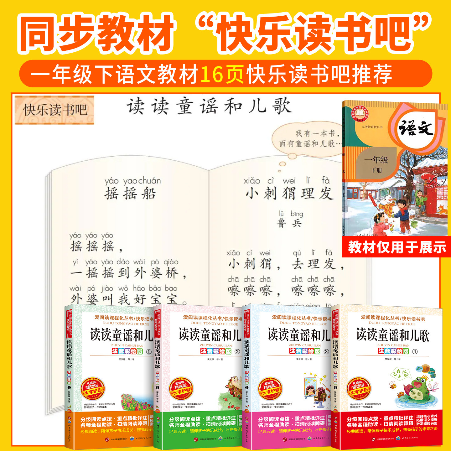 正版 读读童谣和儿歌 书籍大字护眼1年级课本配套同步故事书 樊发稼等著 一年级下册阅读课外书必读无障碍精读版 全4册 注音彩绘版