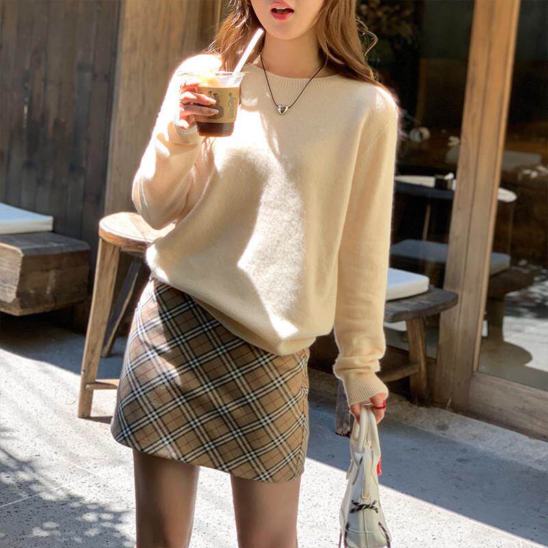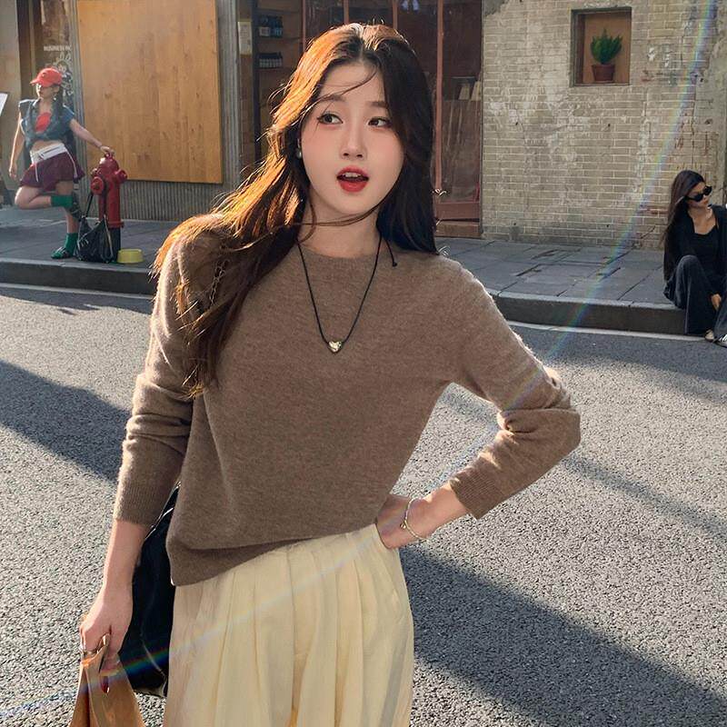 澳洲美丽诺羊绒衫 女圆领内搭大尺码 毛衣打底针织羊毛 正在清仓