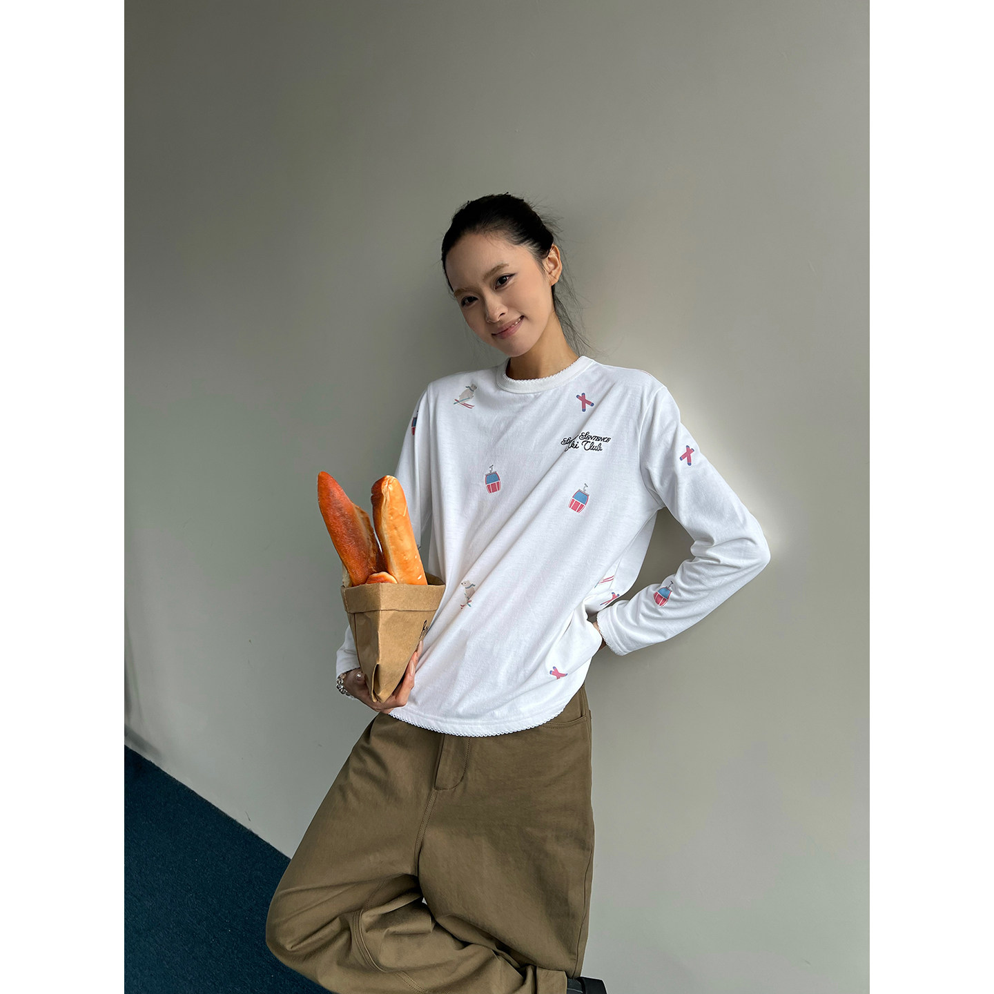 滑雪熊印花速干 SHORT SENTENCE 26早春新品 T恤SOLSOL 纯棉长袖