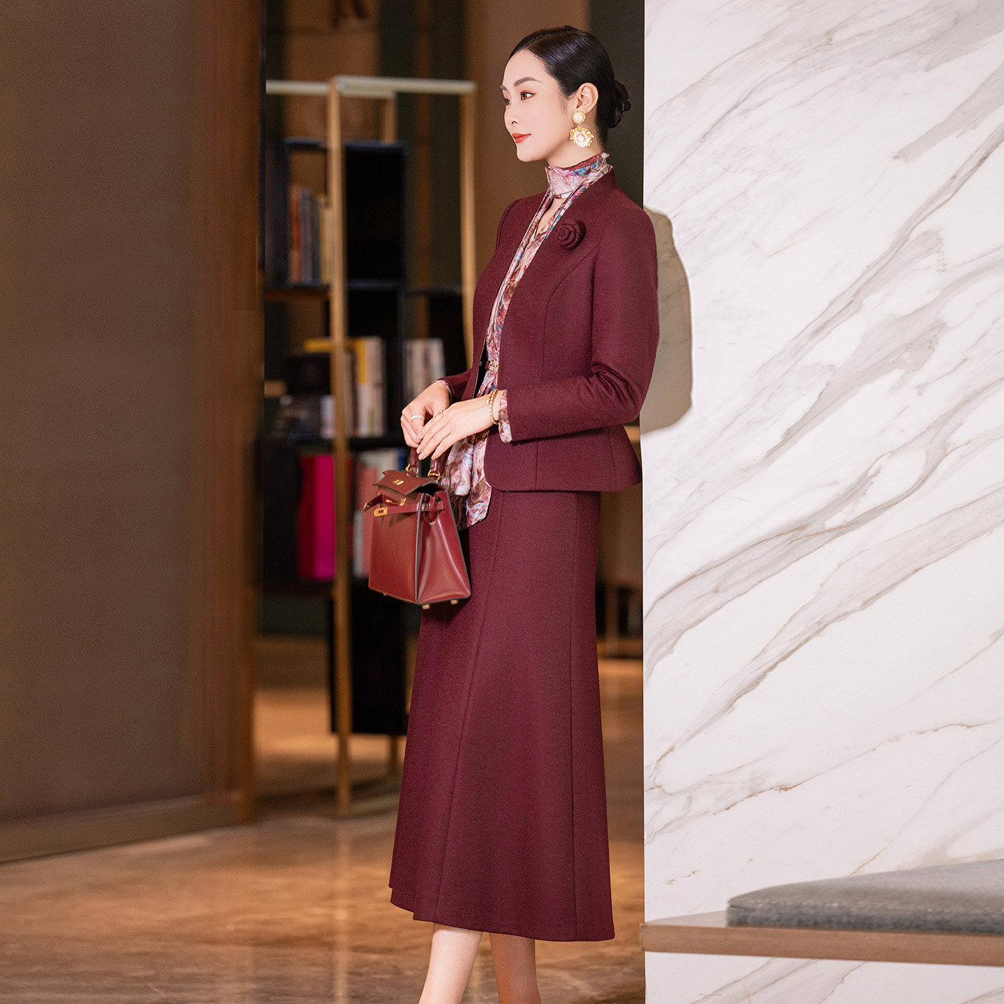 为您提供商品2025冬季 酒红色时尚 喜婆婆婚宴套装 裙女洋气气质毛呢两件套裙 新款的详细介绍,