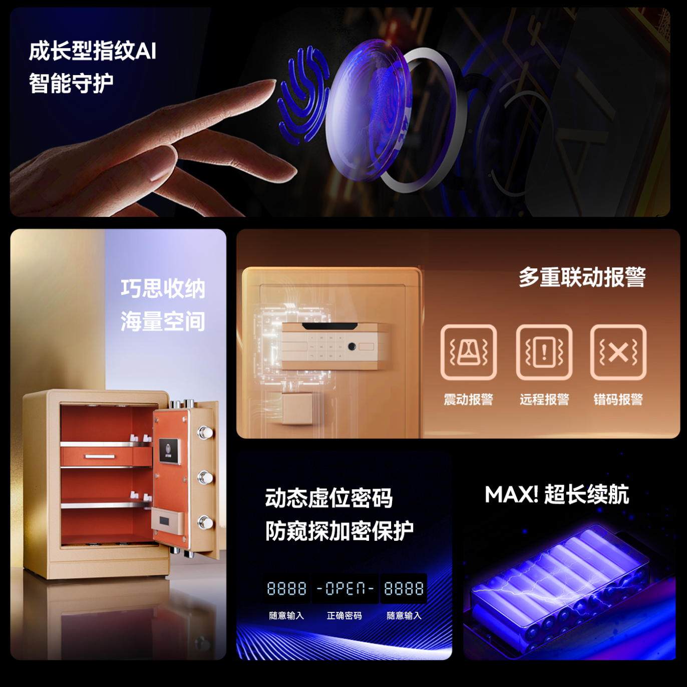 自动开门保管箱20 25cm全钢箱体首饰保险箱 小型家用防盗保险箱入衣柜指纹密码 得力保险柜家用2026年新款