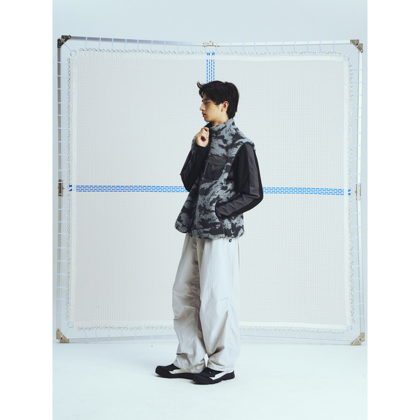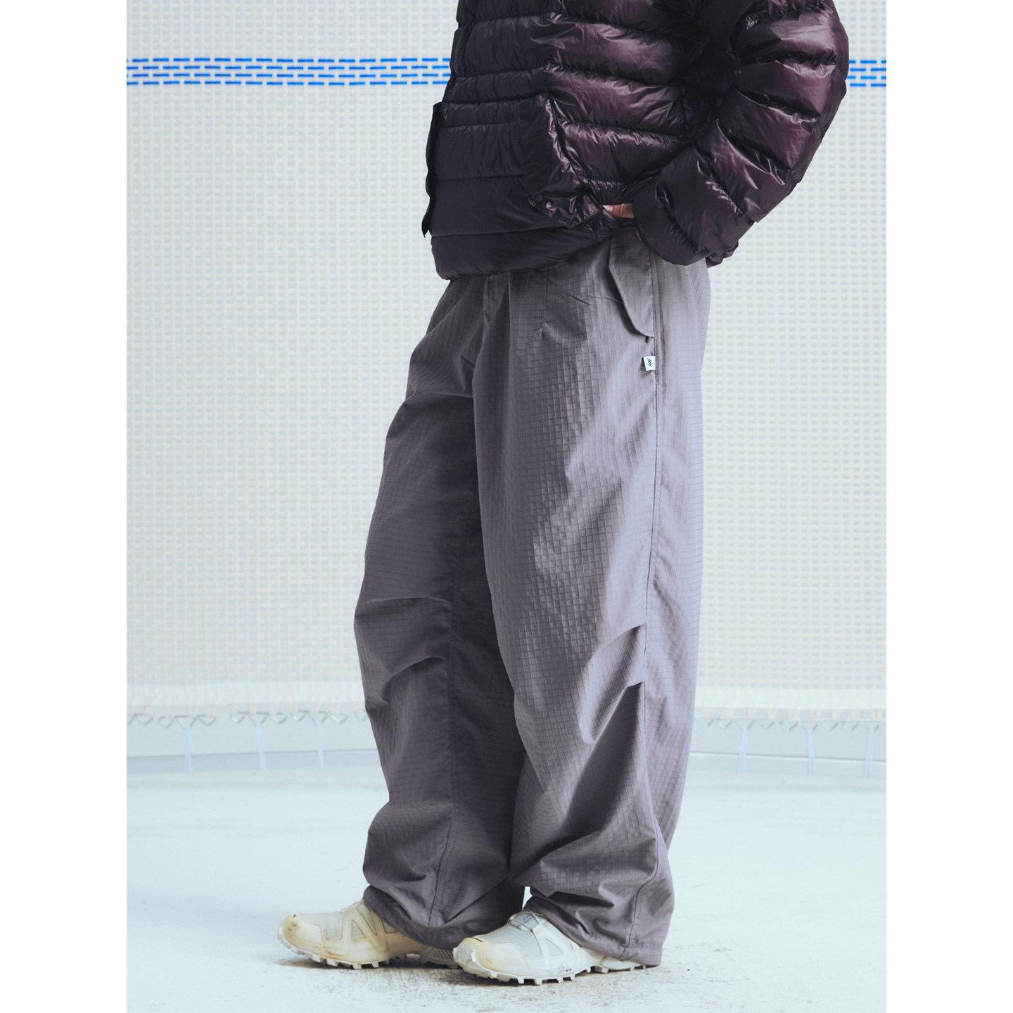 纯色伞兵裤 MOUNTAINFEVER 宽松打褶 隐形拉链口袋 肌理方格由