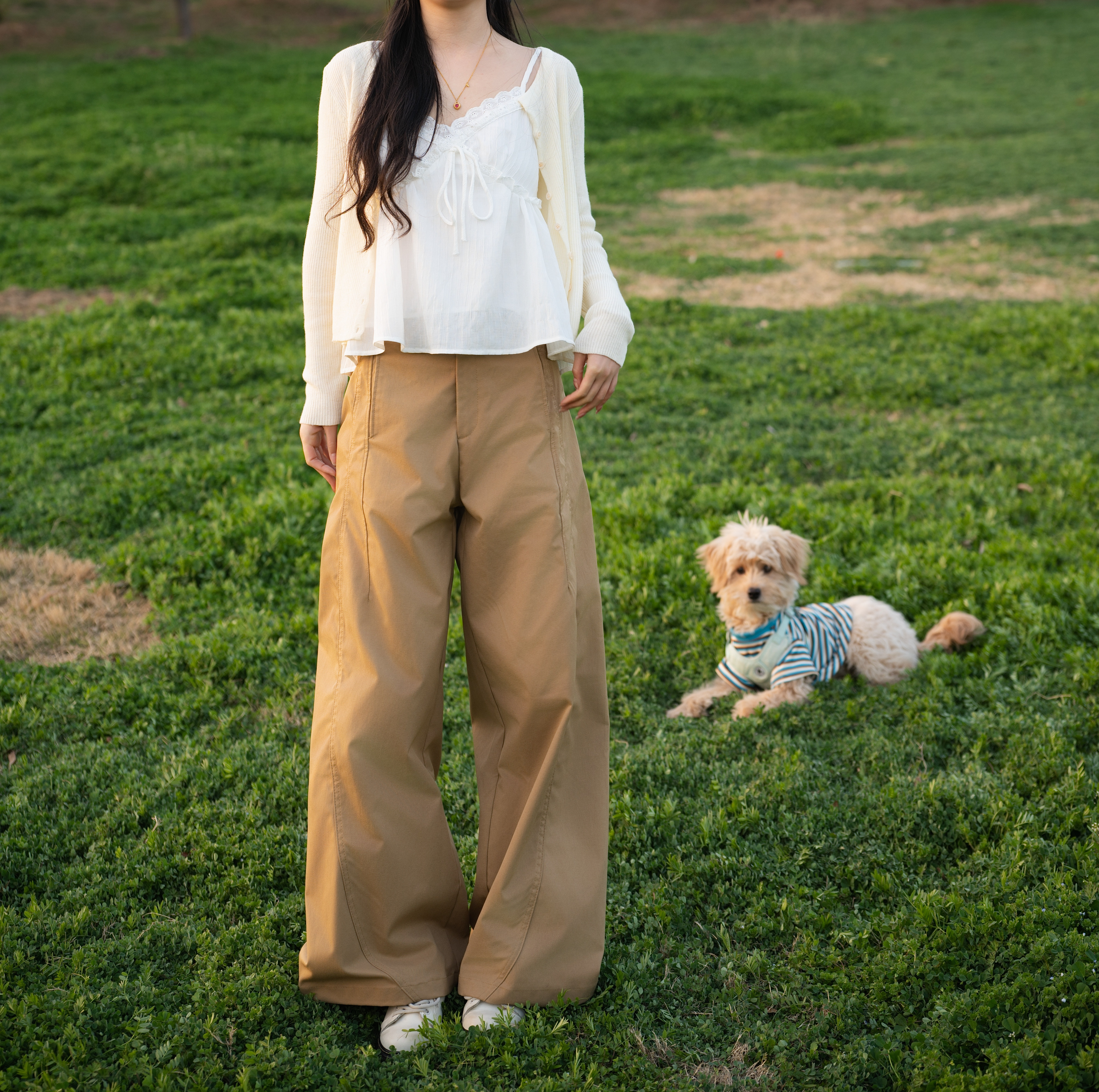 宽松阔腿卡其色裤 子2026春 上衣蕾丝边白色吊带背心 温柔感女春季由