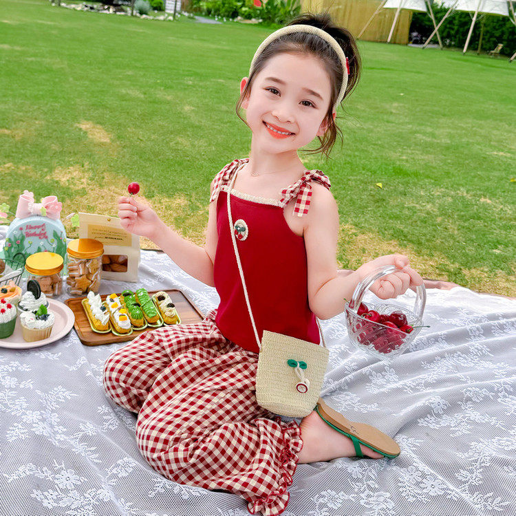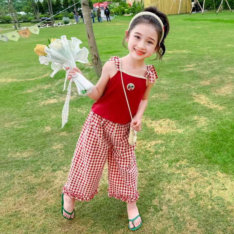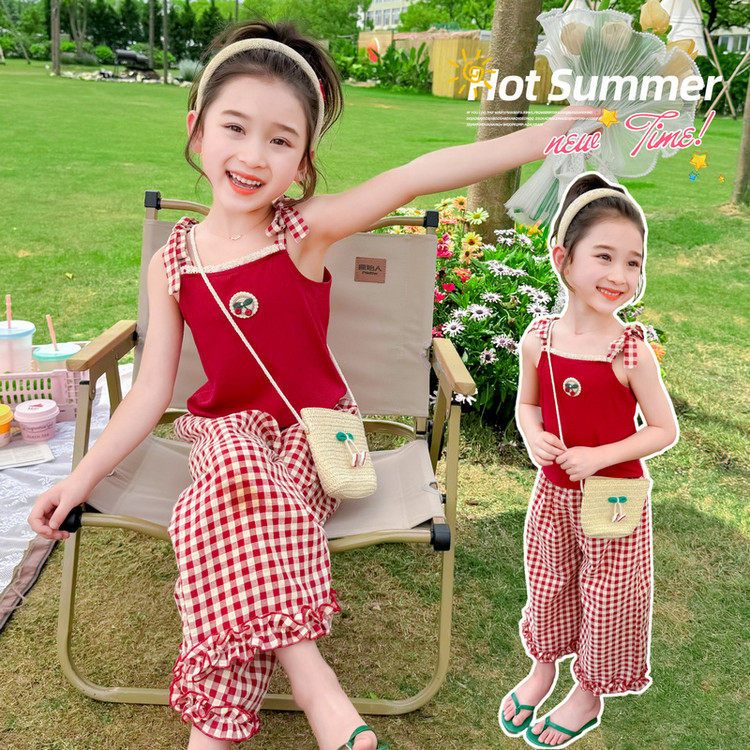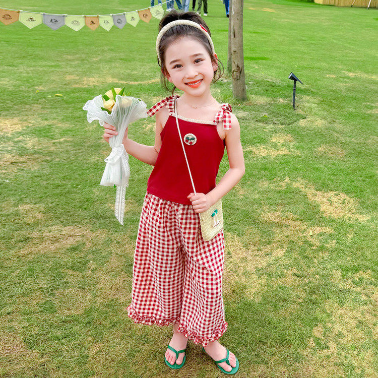 女宝宝2025新款 女童洋气宽松夏季 薄款 吊带套装 两件套潮 网红防蚊裤由