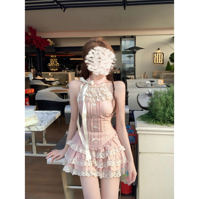 气质辣妹挂脖上衣现货两件套装 女 独特漂亮超好看小众不撞款 夏季