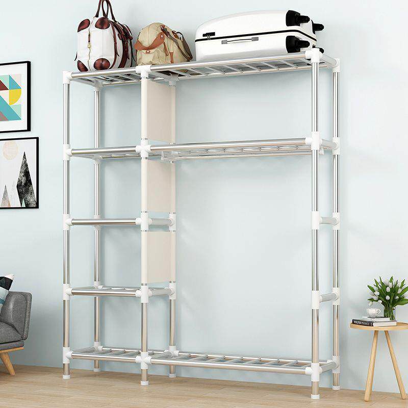 简约现代全钢架衣橱 简易衣柜家用卧室布衣柜出租房用结实耐用组装
