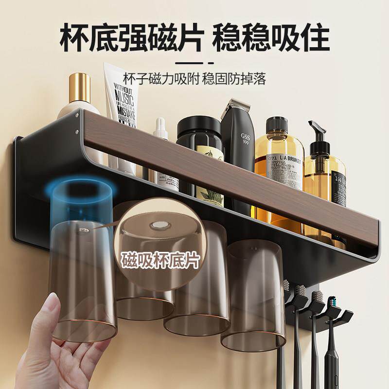 免打孔卫生间磁吸漱口杯洗漱台电动牙刷牙杯挂架 牙刷置物架壁挂式
