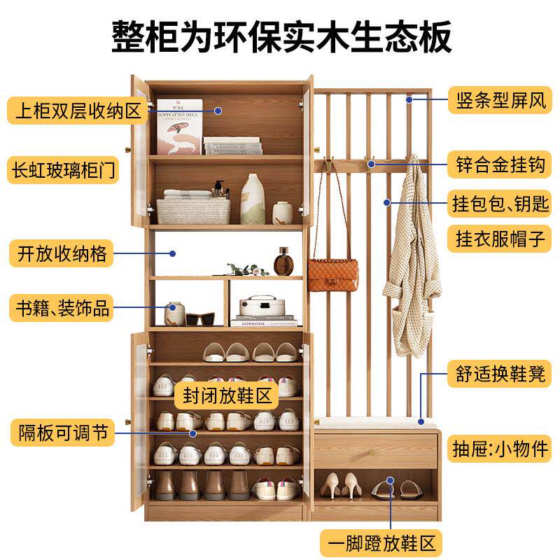 柜门厅玄关柜衣架一体客厅屏风隔断衣帽柜子 圣柏域家用门口实木鞋