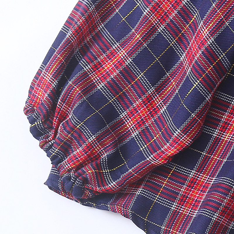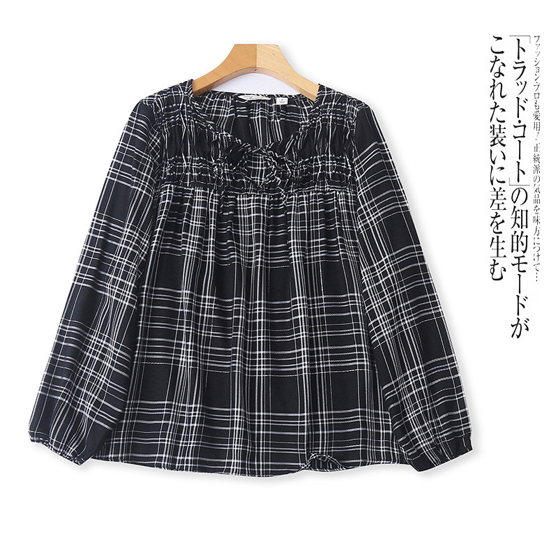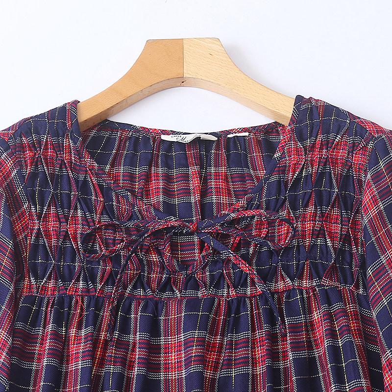 为您提供商品新款 H9533外贸欧美单女士长袖 衬衫 春季 圆领系带宽松格子拼色小衫的详细介绍,