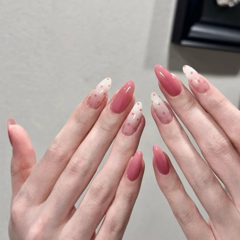 粉色波点简约穿戴甲手工中长海莉美甲高级绝美杏仁指甲 2026新款由