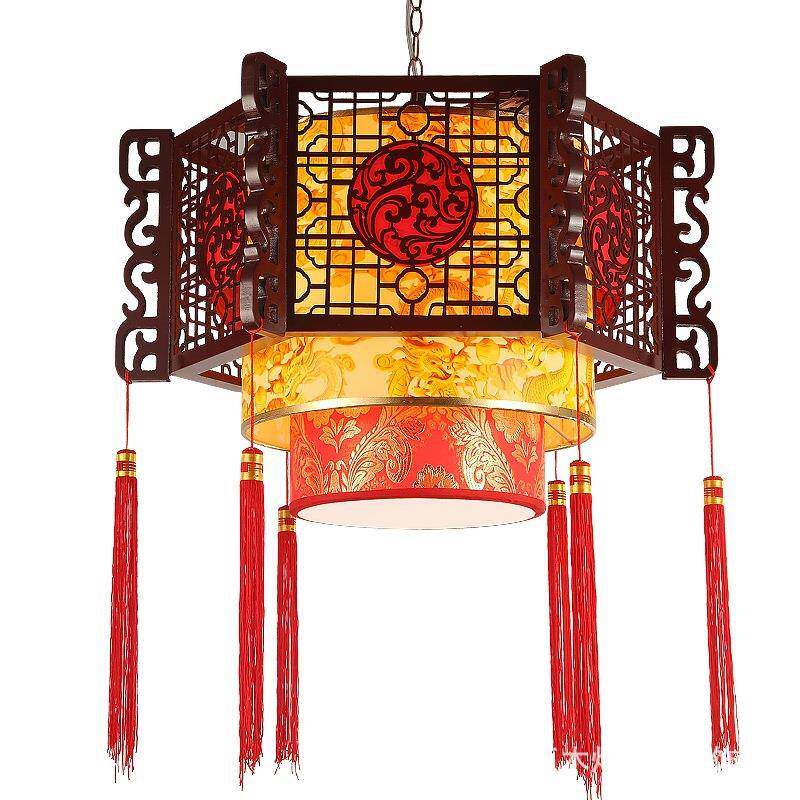 中饭式 饰灯笼客厅卧室古木厅艺羊皮 仿古0321吊灯餐酒店店走复廊装由