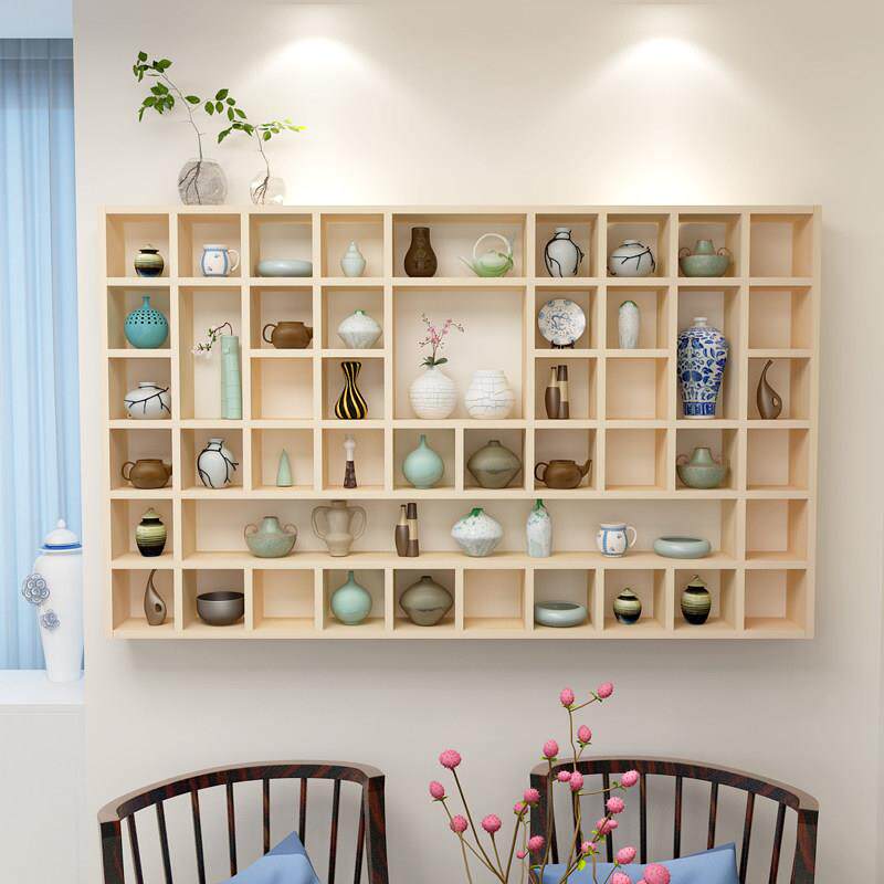 储物柜茶壶杯展示架斯堪 纳维亚 储物架壁挂式 定制实木格架壁挂式由