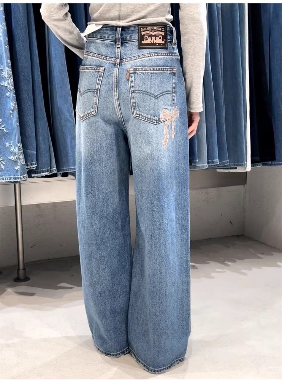 代嘉儿daiclaire牛仔裤 新款 蝴蝶结无弹阔腿拖地甩裤 B9022 女春季