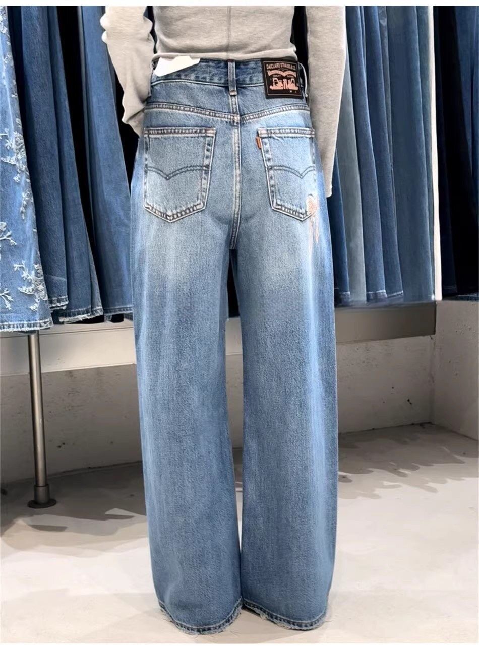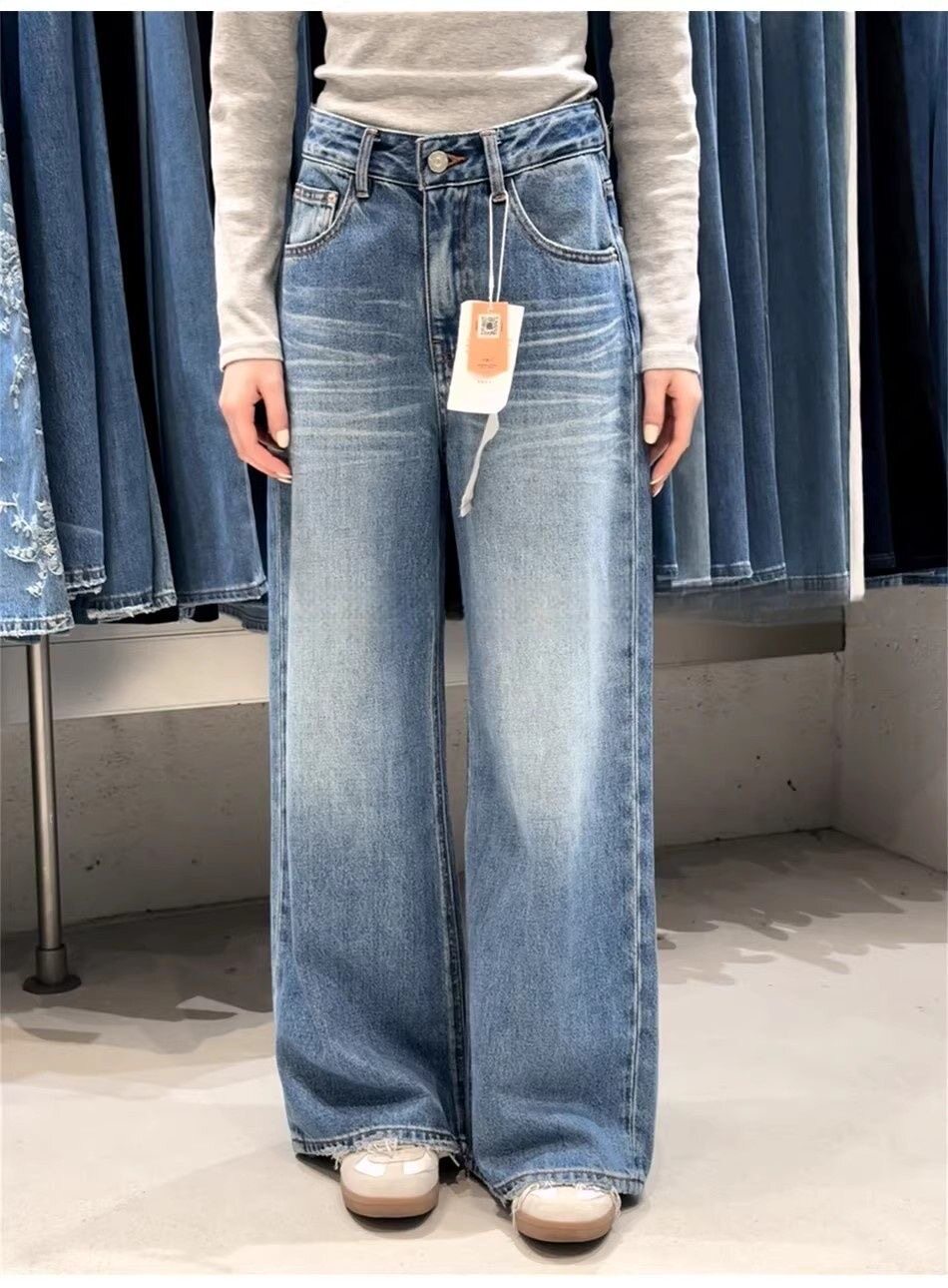 不贴腿显瘦阔腿拖地裤 女春季 橘子树在哪儿复古水洗蓝色牛仔裤